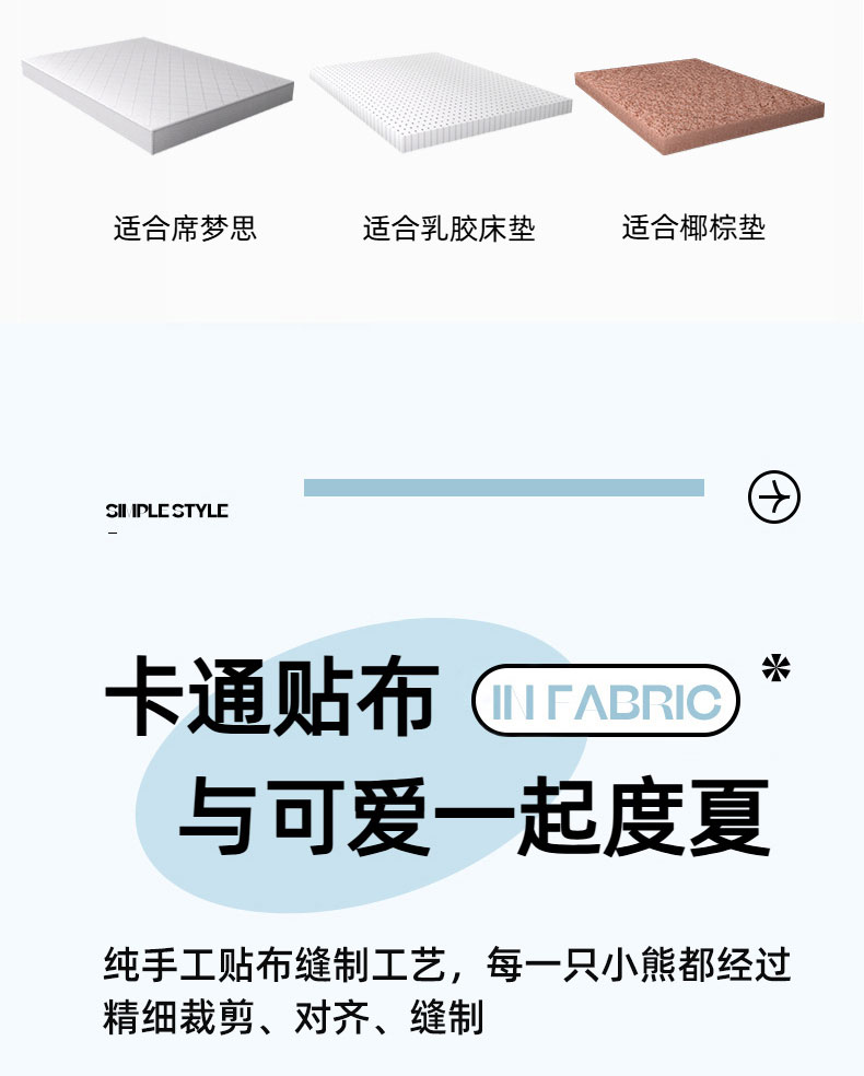 当前位置: 91家纺网 > 商品网购 > 床上用品 > 凉席 > 其他凉席 > Sweet dreams甜梦 2026新款A类锦氨异性贴布高端豆豆凉席-场景1 抱抱熊
