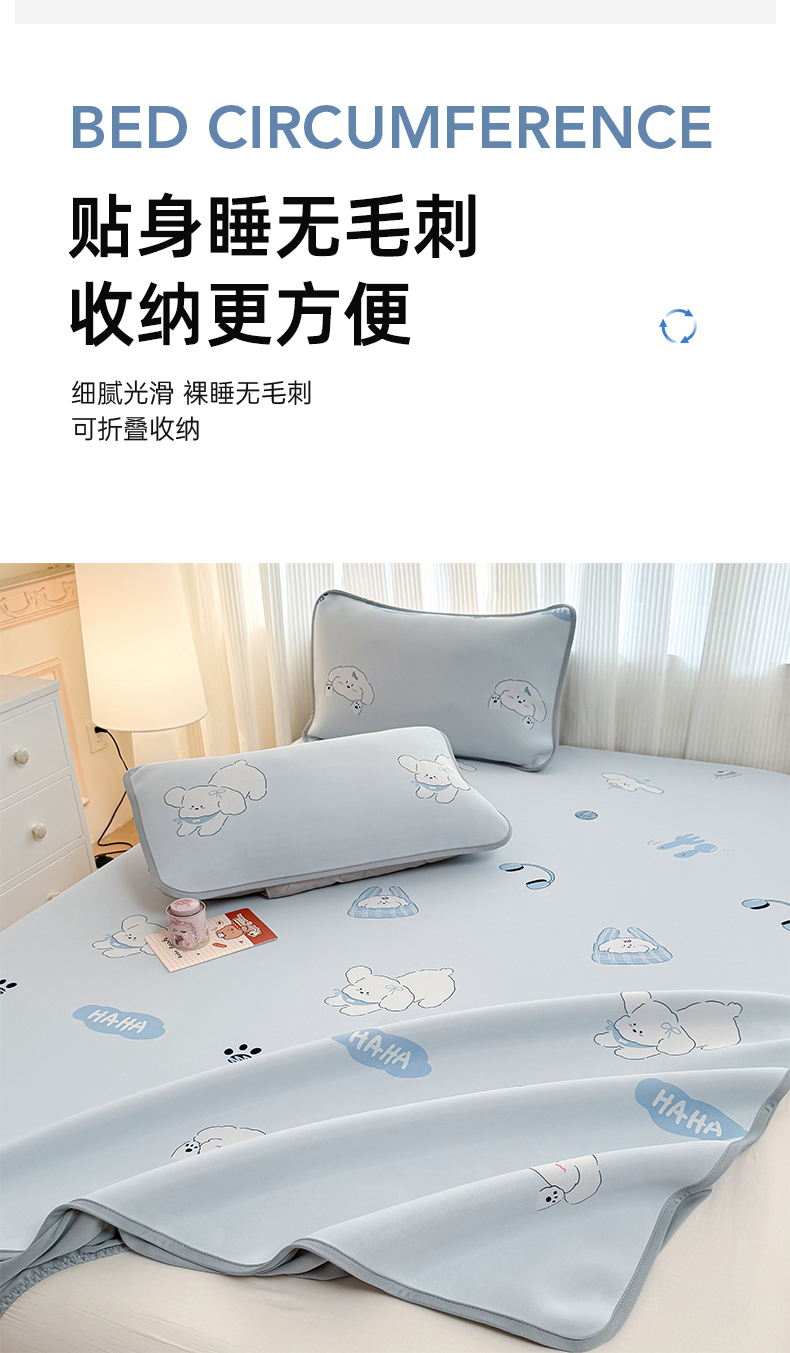(总)布柔 2026新款冰皮凉席床笠冰丝小清新卡通印花软席可机洗,哈哈狗,初夏,哈基米,花语,蓝莓,礼物熊,铃兰兔,摩登时代,圣诞树,素叶,泰迪熊,条纹狗,晚安狗,小熊猫,绣球花,郁金香