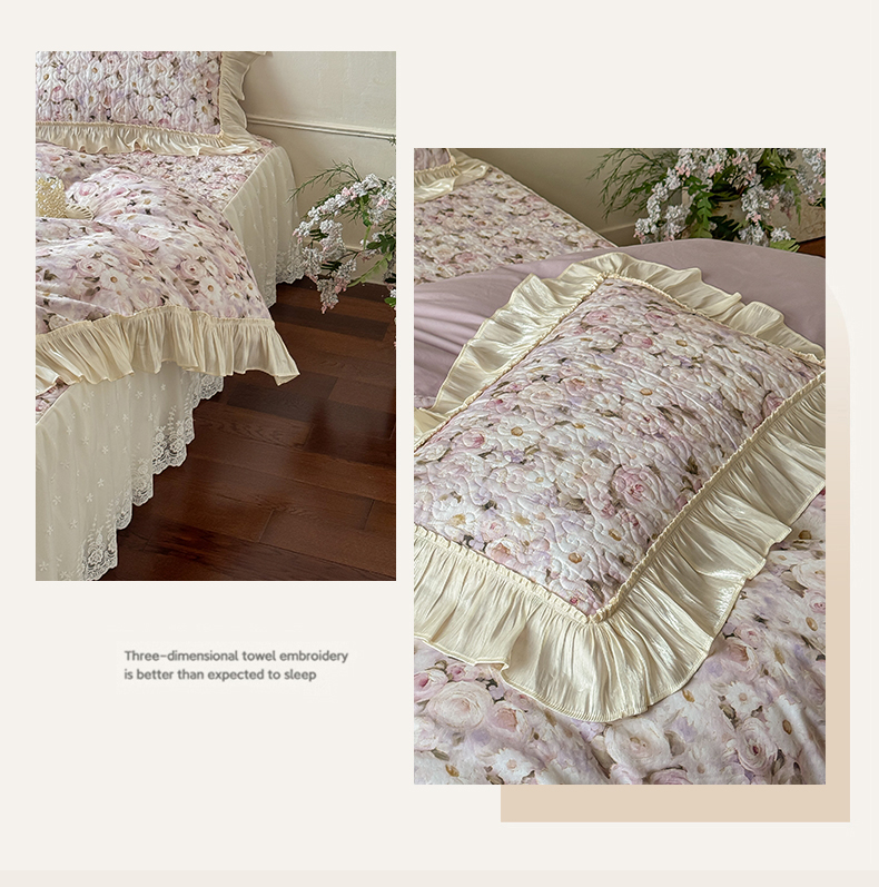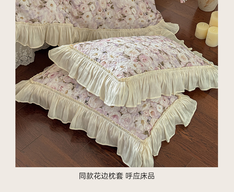 • 91家纺网 家纺一手货源 找家纺 花香四季家纺 2026新款全棉双层纱床裙三件套 海棠花开-紫
