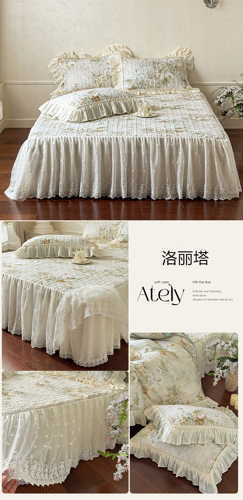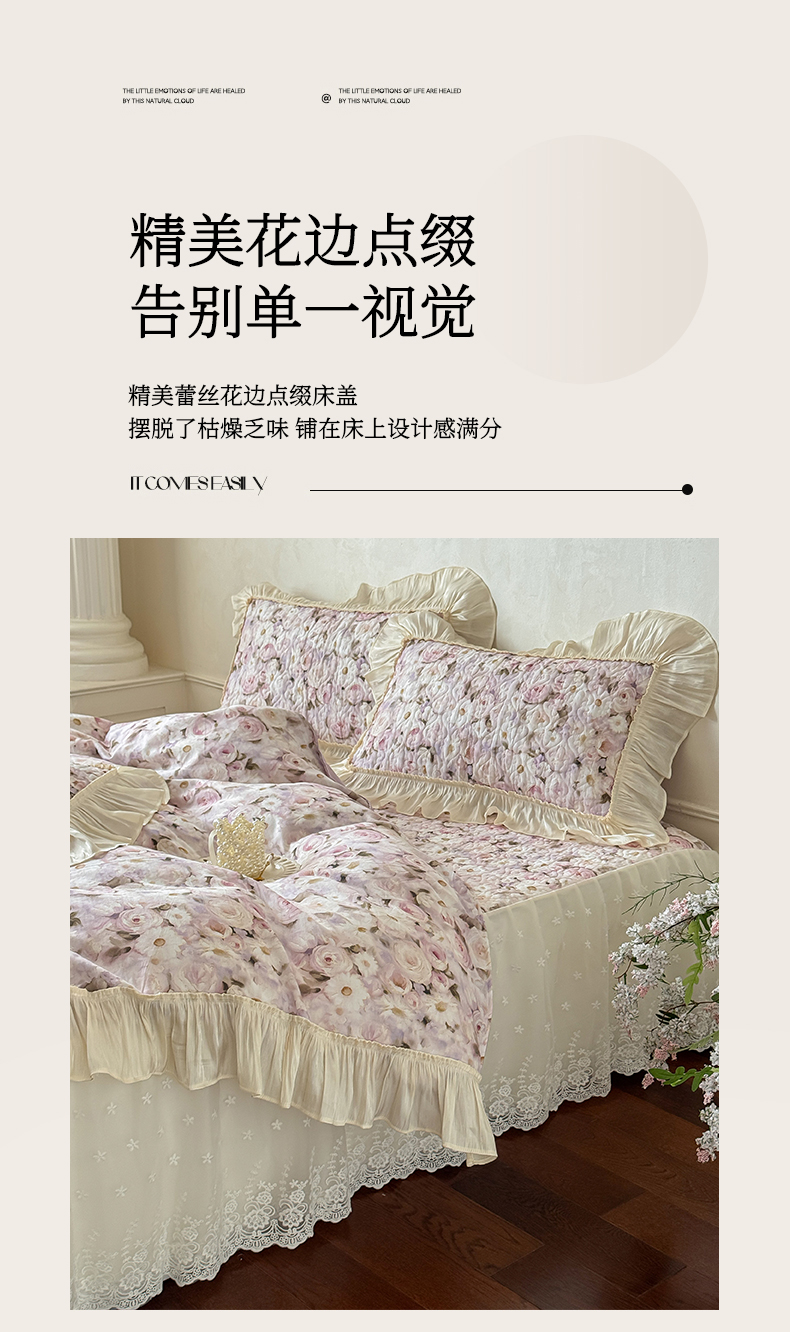• 91家纺网 家纺一手货源 找家纺 (总)花香四季家纺 2026新款法式天丝棉蕾丝雪纺仙女风夹棉床裙款四件套,赫本-粉色,赫本-米白色