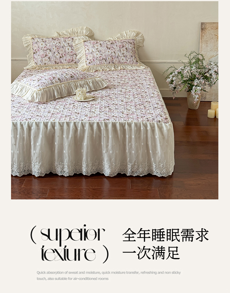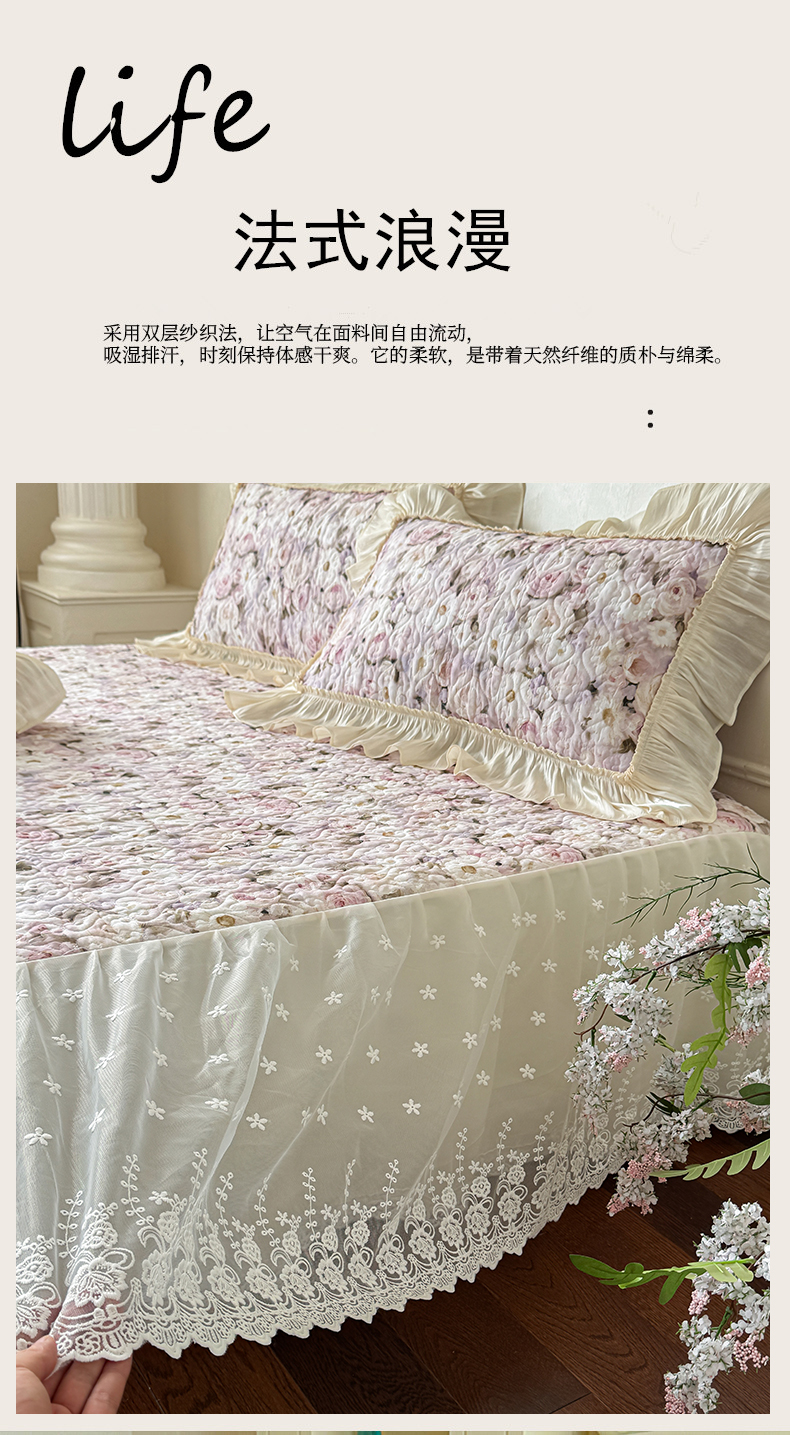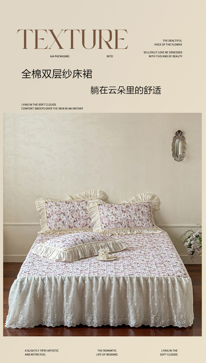 (总)花香四季家纺 2026新款全棉双层纱床裙三件套,半夏,海棠花开-紫,海棠花开-绿,洛丽可,朝花夕拾