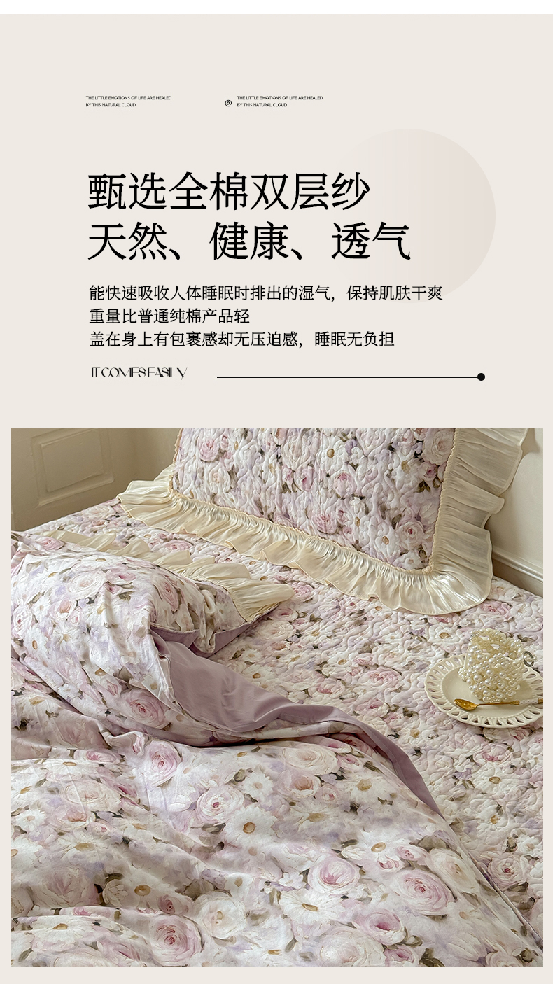 (总)花香四季家纺 2026新款全棉双层纱数码印花四件套,半夏,洛丽可,朝花夕拾,海棠花开-紫,海棠花开-绿