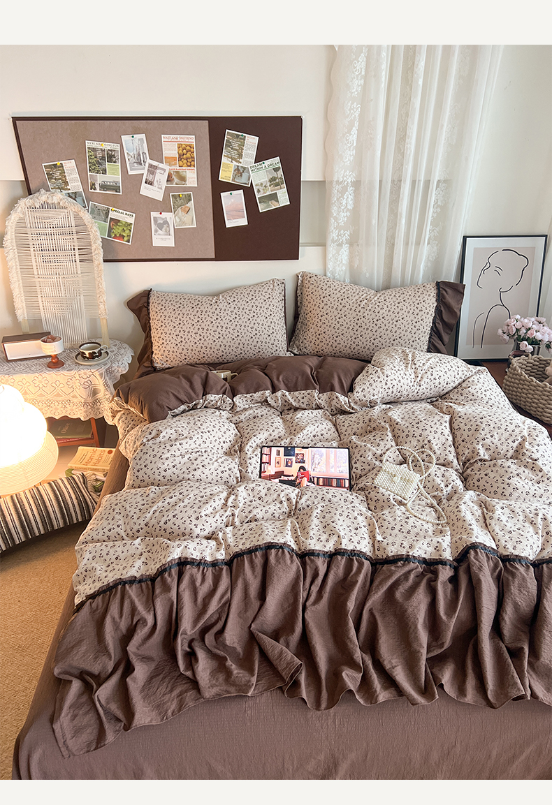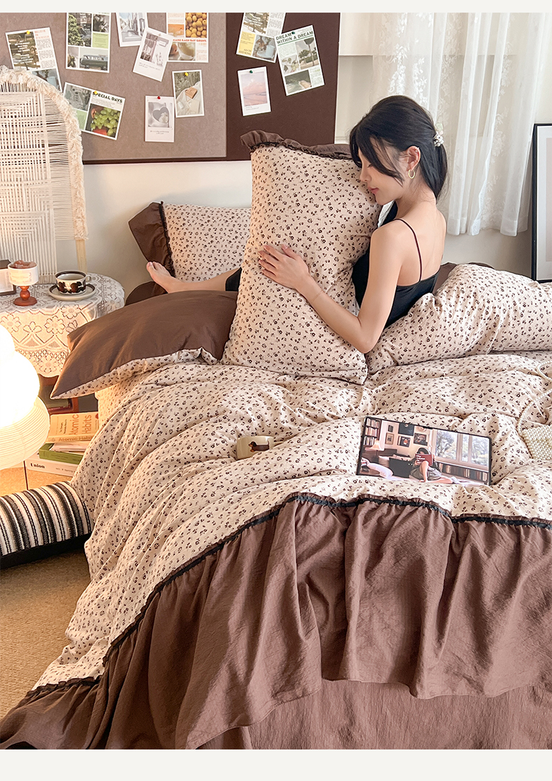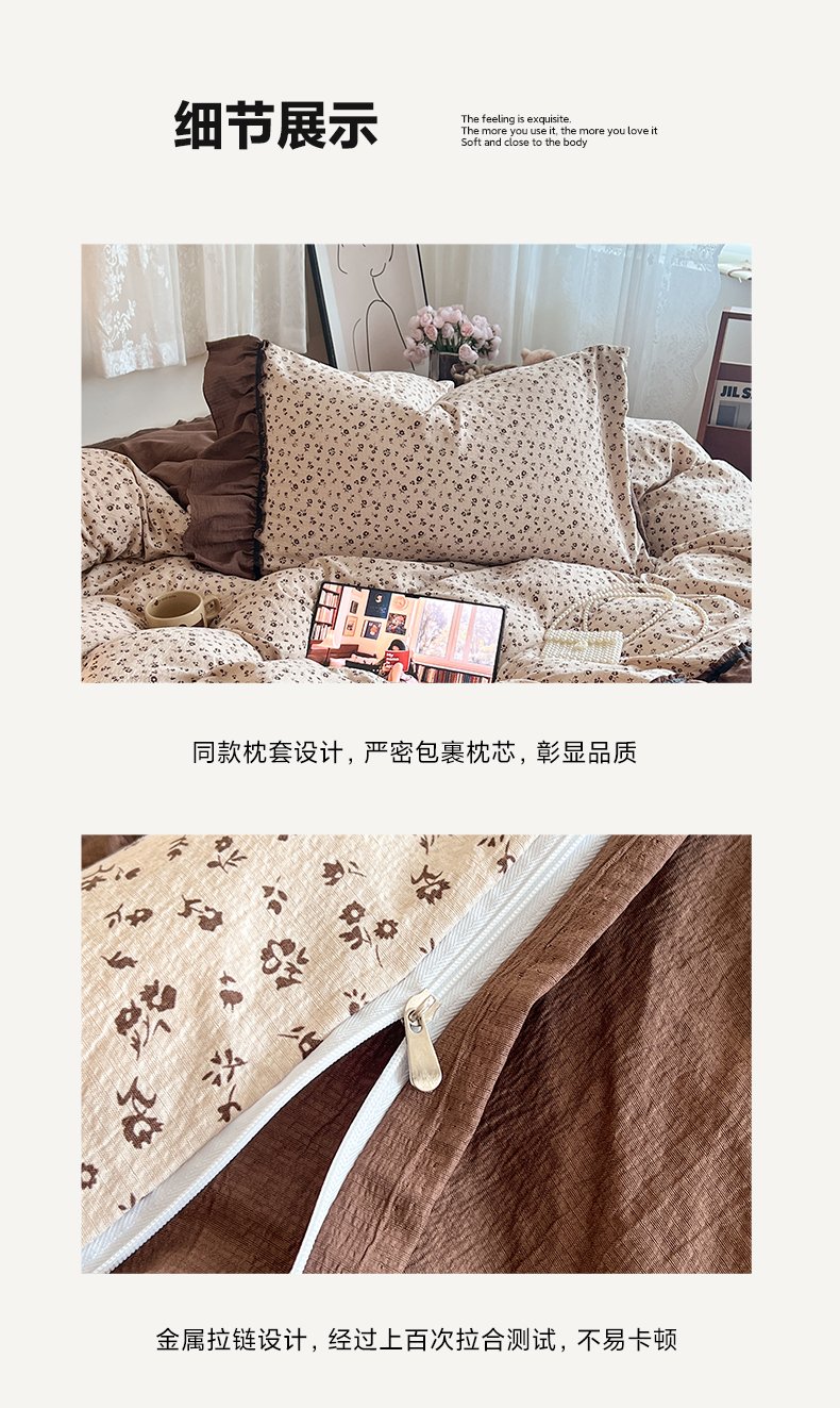 商品名称:晨曦家纺 2026新款韩系法式慵懒氛围感印花泡芙花边四件套 布朗花影