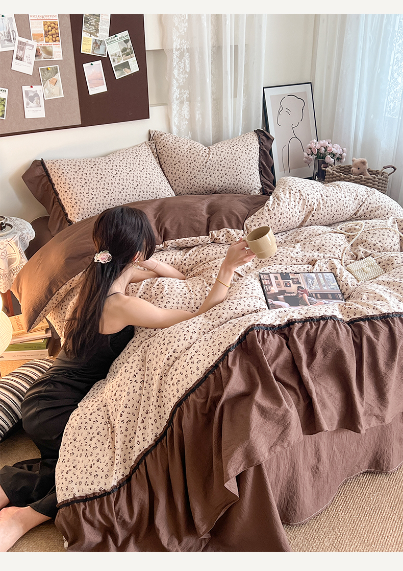 晨曦家纺 2026新款韩系法式慵懒氛围感印花泡芙花边四件套 布朗花影