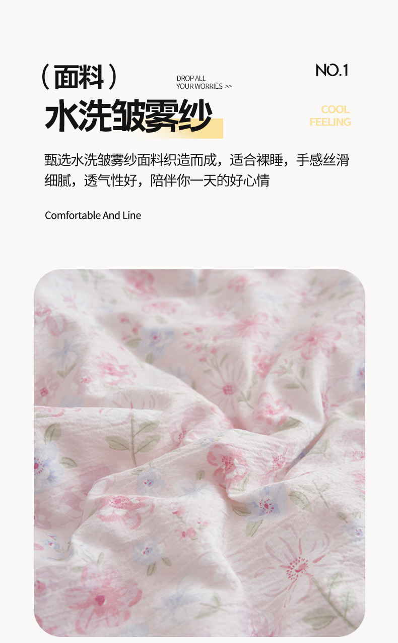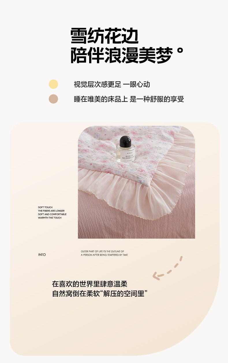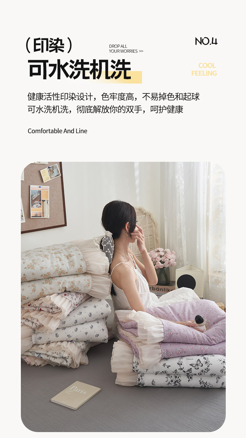 当前位置: 91家纺网 > 商品网购 > 床品套件 > 四件套 > 夏被四件套 > 晨曦家纺 2026新款皱雾纱水洗夏凉被夏被四件套少女ins风韩版 奶油花篱
