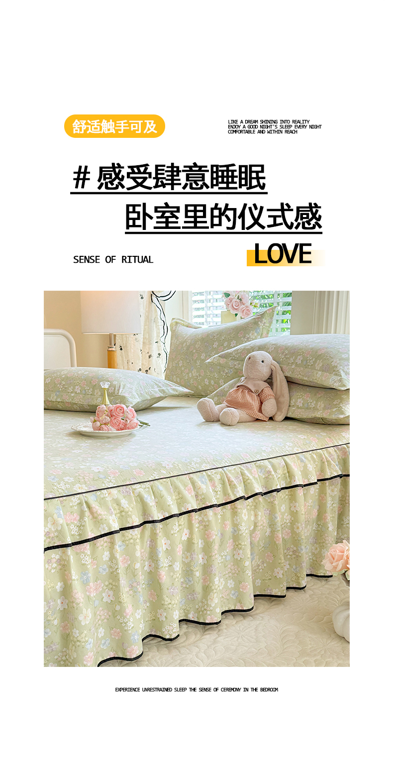 (总)优家居 2026新款A类水洗棉床裙单件三件套皱皱纱韩版公主风花边床罩直播爆款外贸定制,木槿花,一口葡萄,欧若拉,小苍蓝,梦华录,海棠花颂,爱心蝴蝶结,巴宝格-咖,豹纹-咖,蝶舞芳华,繁花似锦,粉色猫猫,粉雾结语,花花田园,莓好时光,秘园絮语,陌上花开,紫雾花园