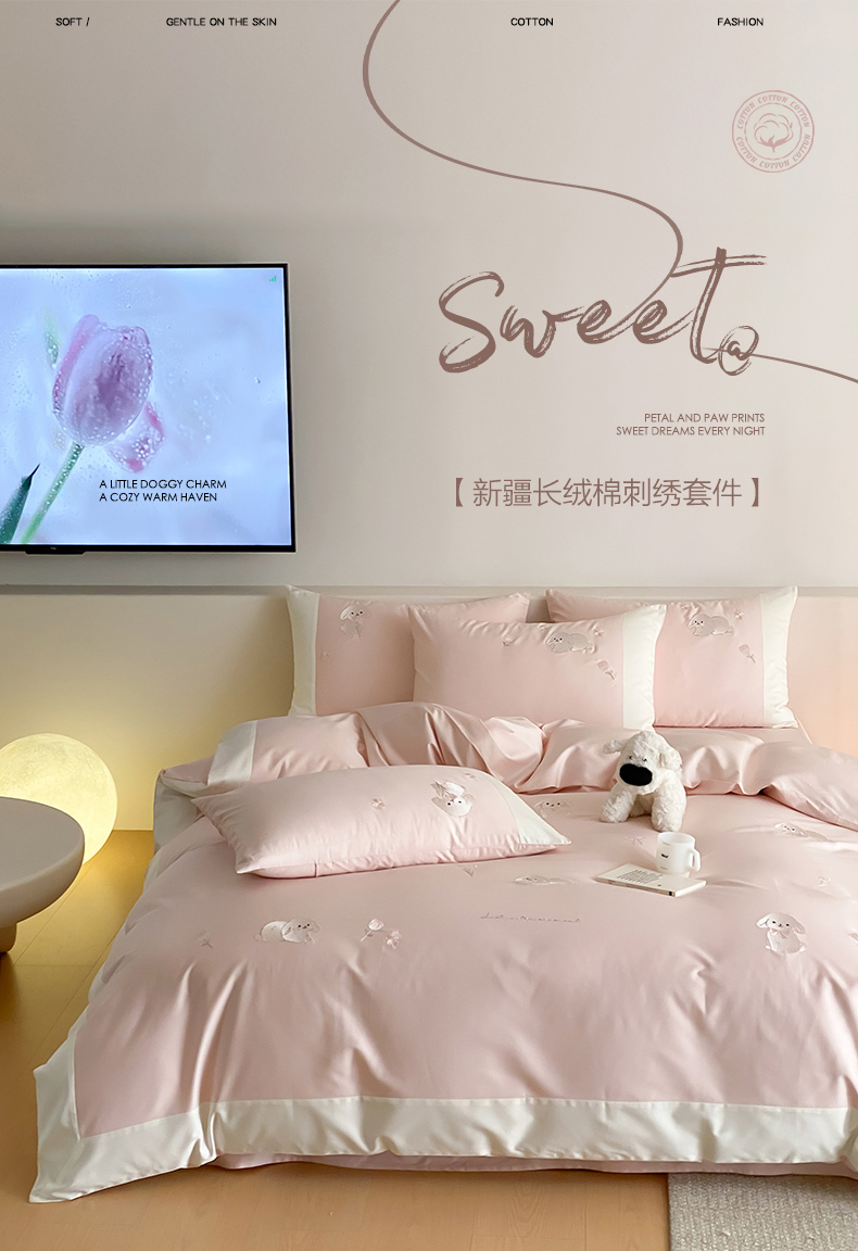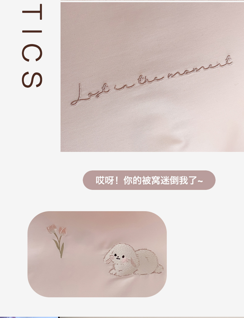 商品名称:云栖家居 2026新款50支长绒棉拼角卡通纯棉刺绣-小萌兔 小萌兔-粉