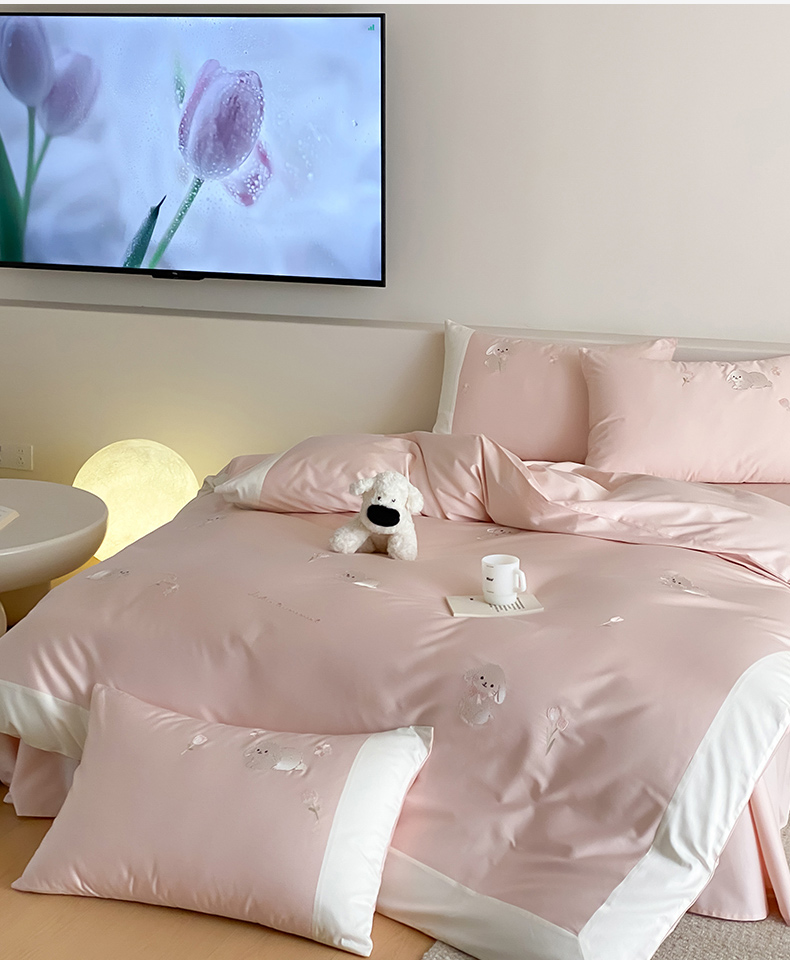 云栖家居 2026新款50支长绒棉拼角卡通纯棉刺绣-小萌兔 小萌兔-粉