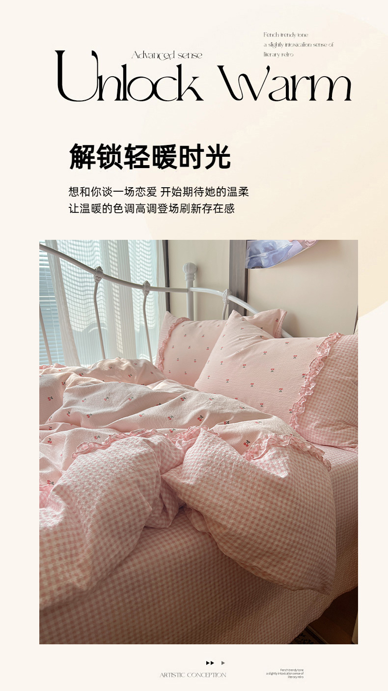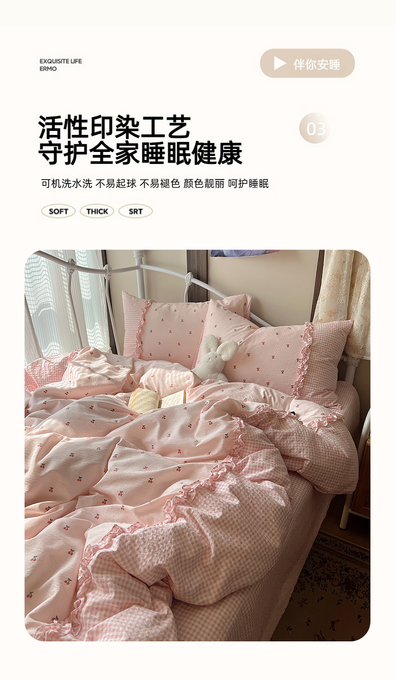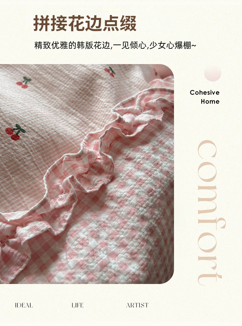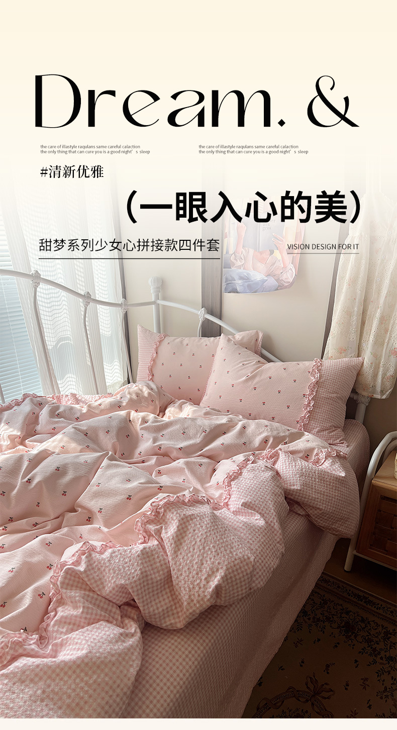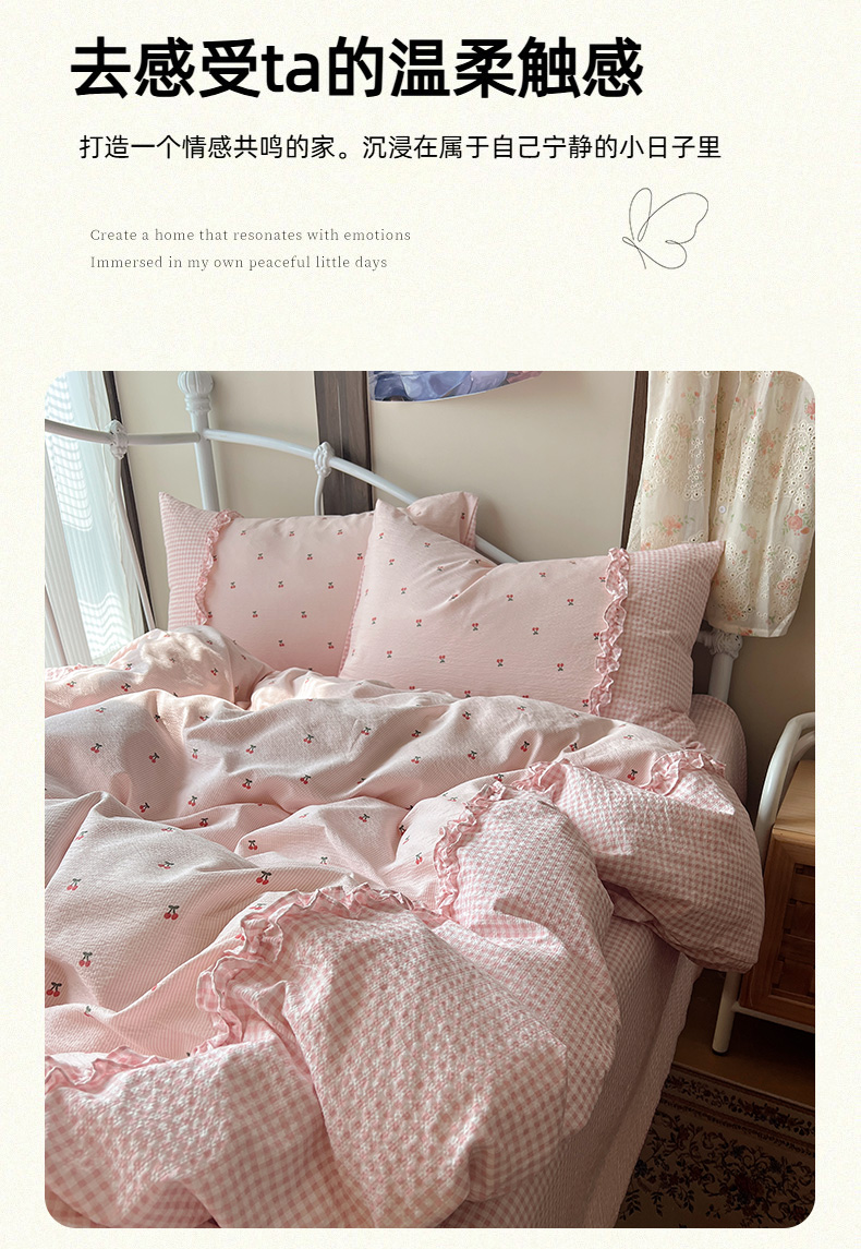 当前位置: 91家纺网 > 商品网购 > 床品套件 > 四件套 > 其它四件套 > 繁花家居 2026殷桃晚风甜梦系列少女心拼接工艺四件套 晚风甜梦-粉