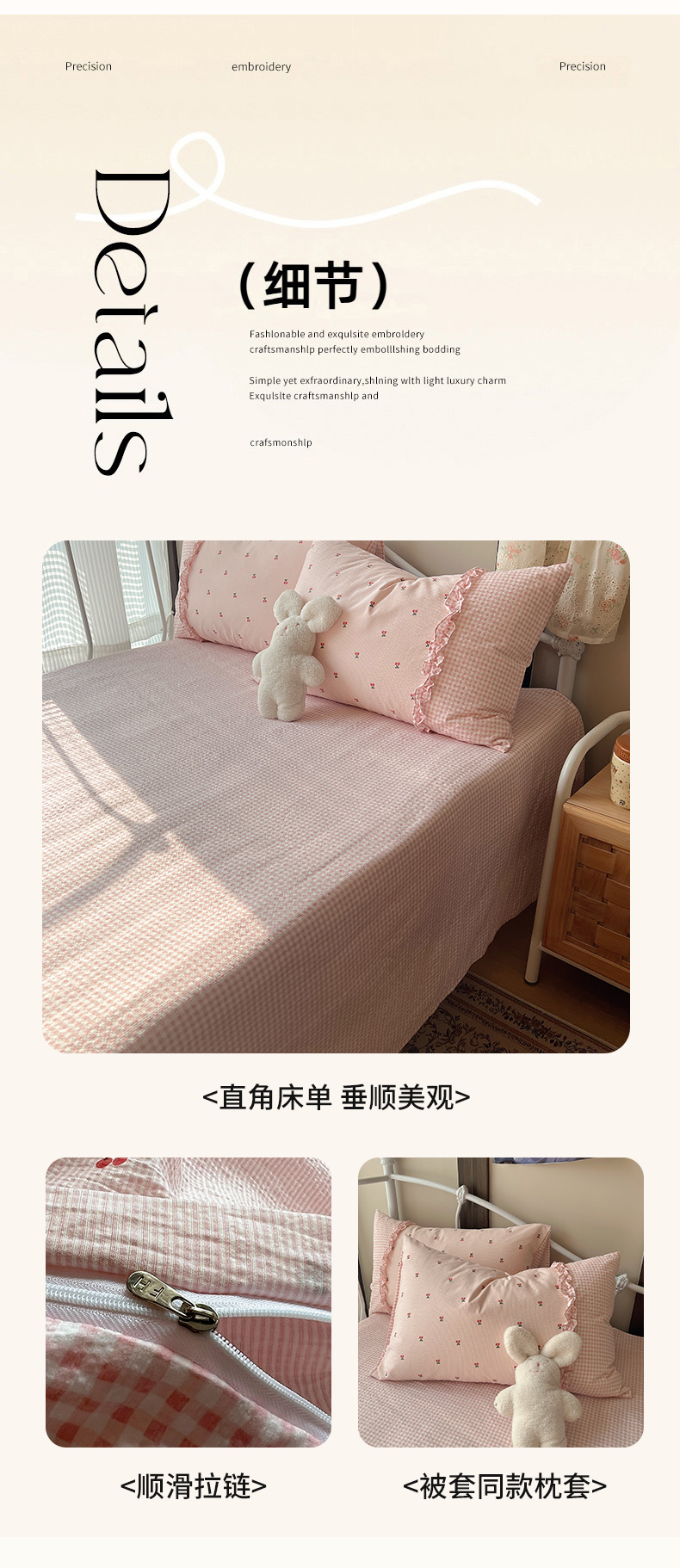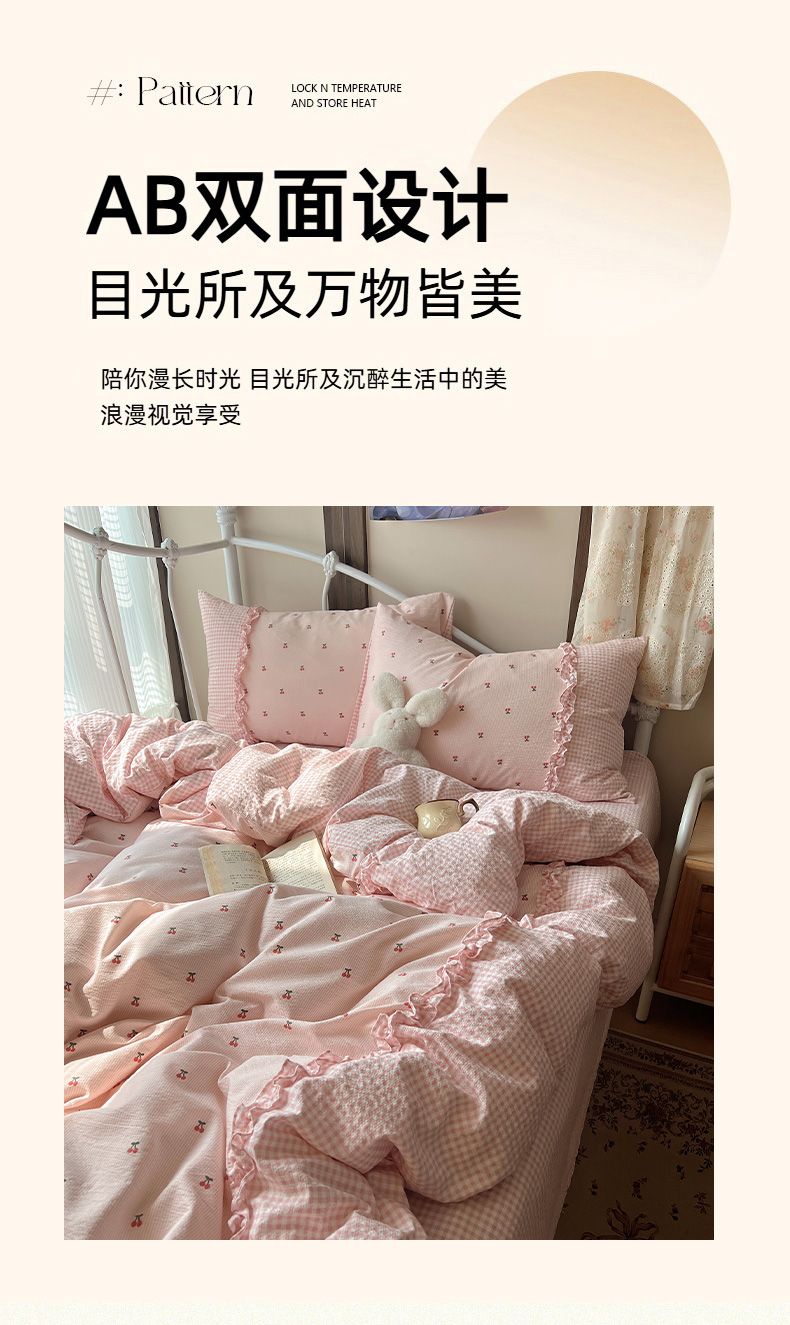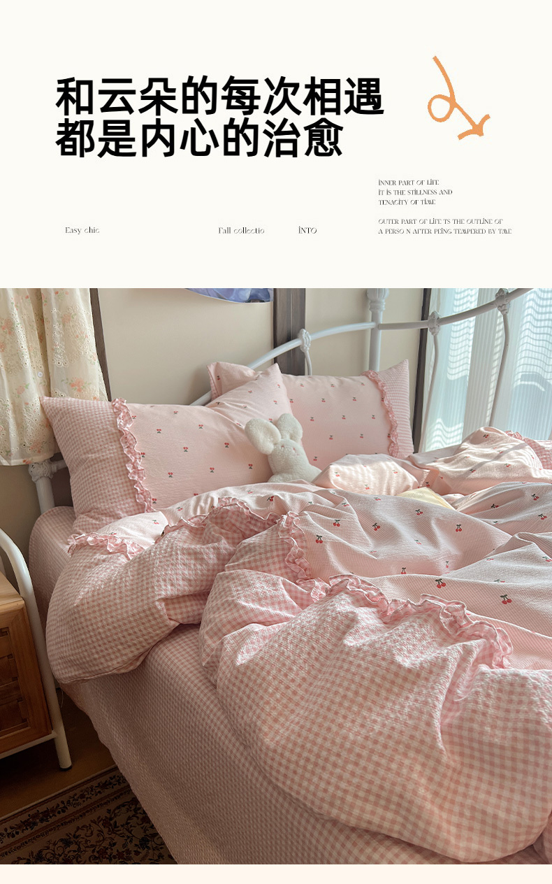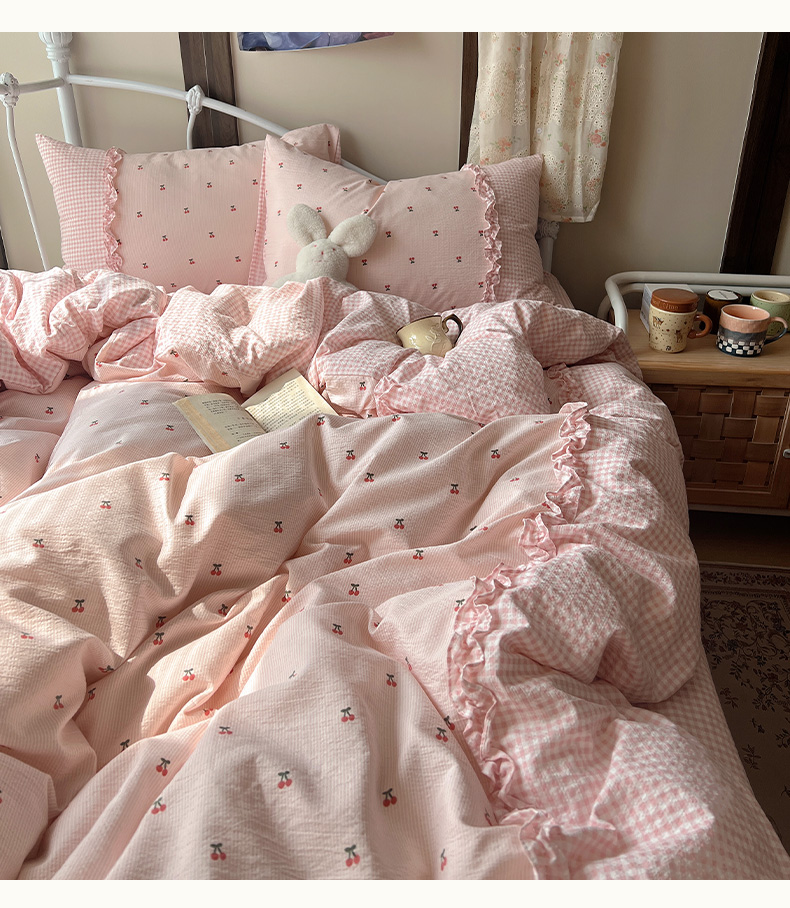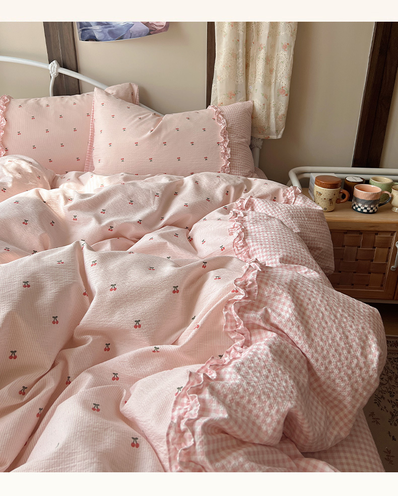 当前位置: 91家纺网 > 商品网购 > 床品套件 > 四件套 > 其它四件套 > 繁花家居 2026殷桃晚风甜梦系列少女心拼接工艺四件套 晚风甜梦-粉