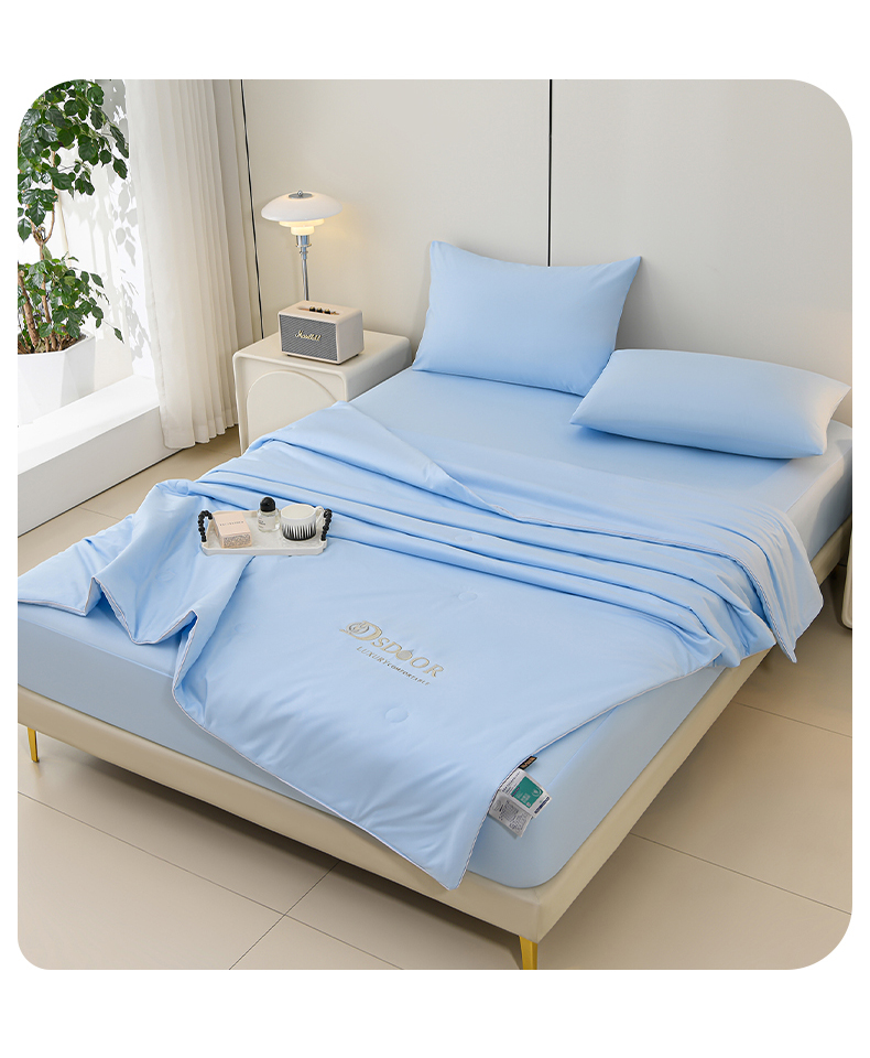 • 91家纺网 家纺一手货源 找家纺 预言家纺 2026新款水洗冰丝床笠款夏被四件套空调被跨境外贸床笠款 慕斯深兰