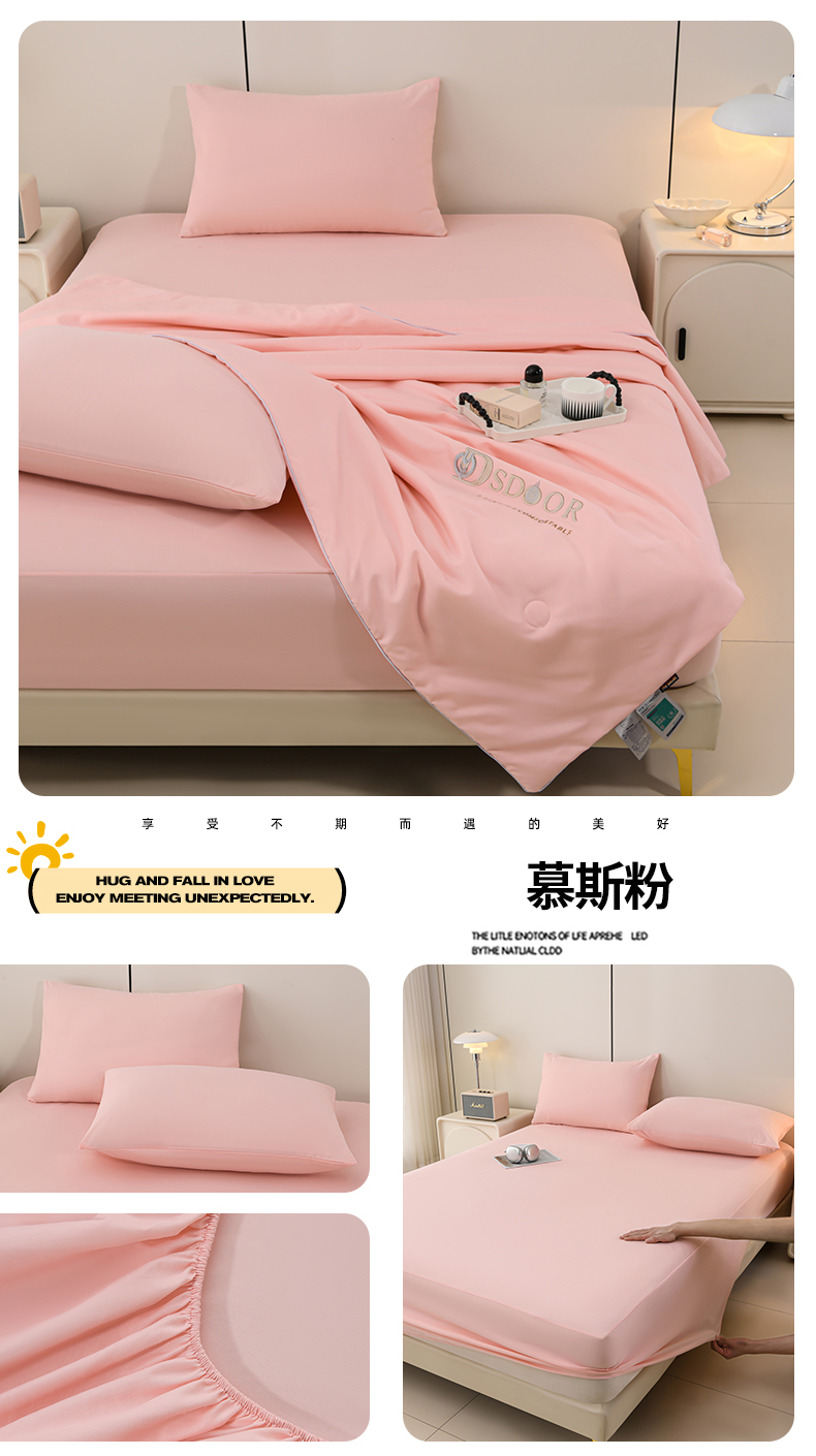 • 91家纺网 家纺一手货源 找家纺 (总)预言家纺 2026新款水洗冰丝床笠款夏被四件套空调被跨境外贸床笠款,慕斯橙,慕斯粉,慕斯黑,慕斯咖,慕斯米白,慕斯深灰,慕斯深兰,慕斯水绿,慕斯星空蓝,慕斯银灰,慕斯珍珠白