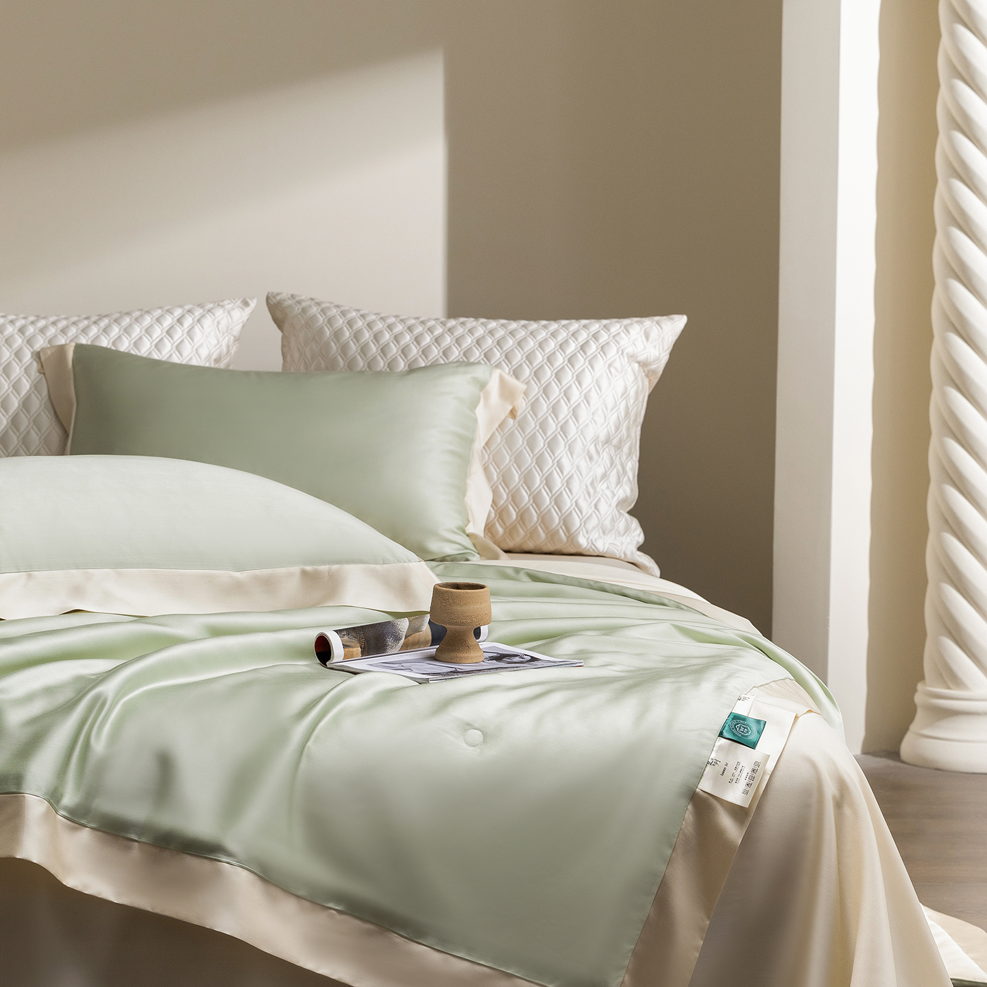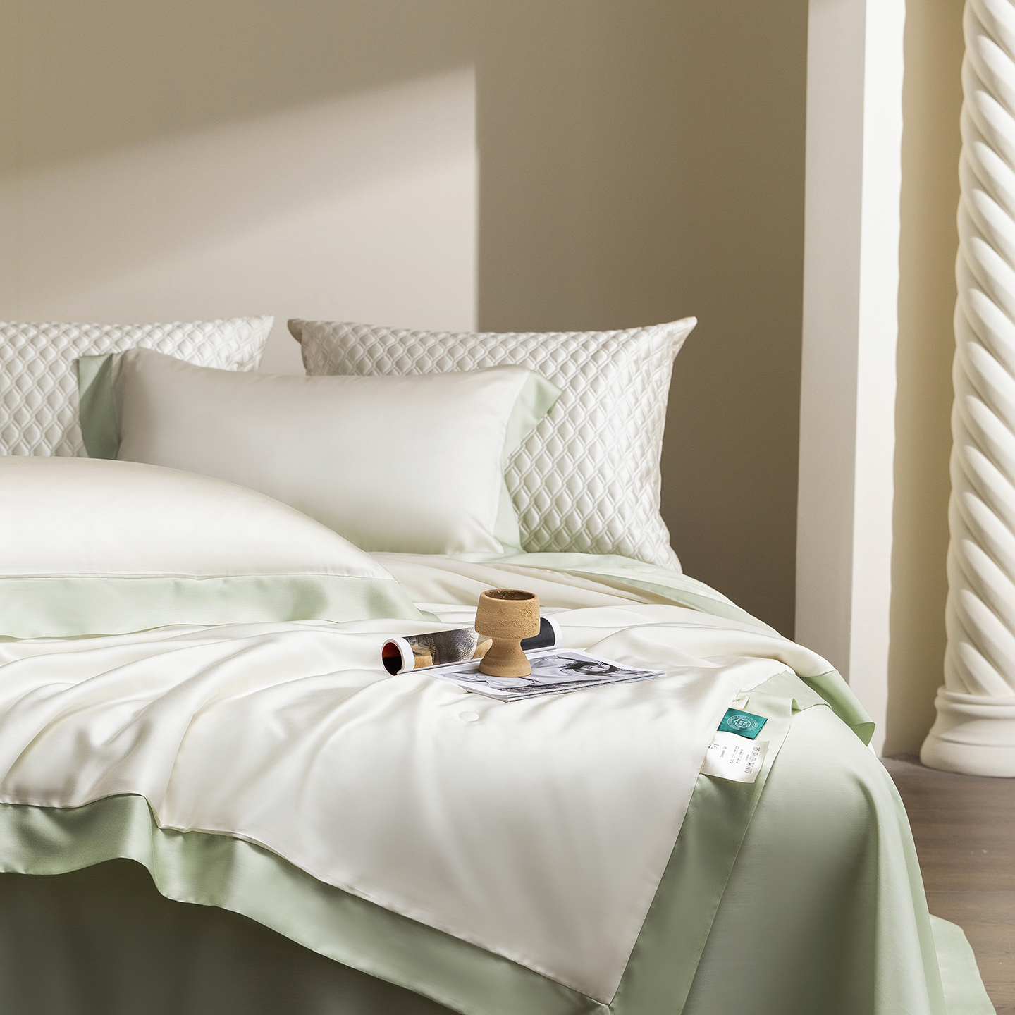 (总)佳汐蓝家纺 2026新款进口奥地利兰精天丝丝颜悦色-夏被四件套,瓷器绿,丁香紫,灵境兰,缦豆沙,水晶灰,杏云粉,杏云绿,云水绿