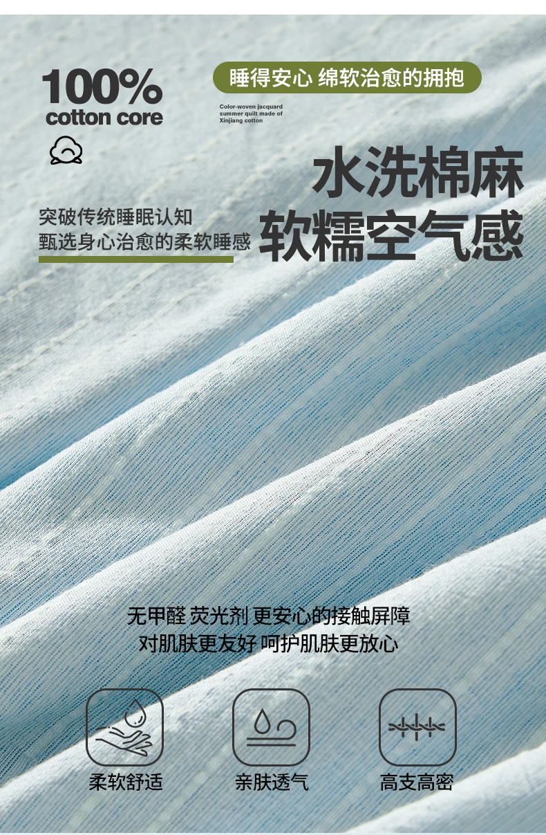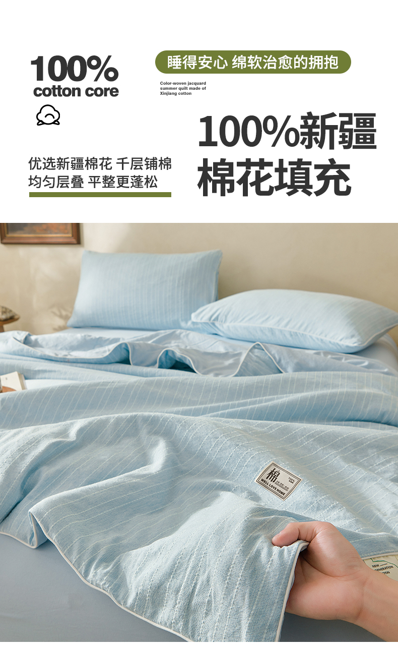 晓时候 2026新款色织水洗棉麻100%新疆棉花被夏被全棉被子夏凉被空调被 静谧蓝
