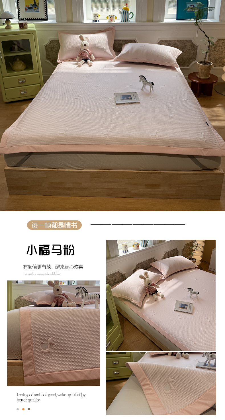 (总)Sweet dreams甜梦 2026新款夏款A类锦氨卡通刺绣立体床笠款凉感席,安睡小熊,布噜海马,春日小兔,乐萌小象,组合