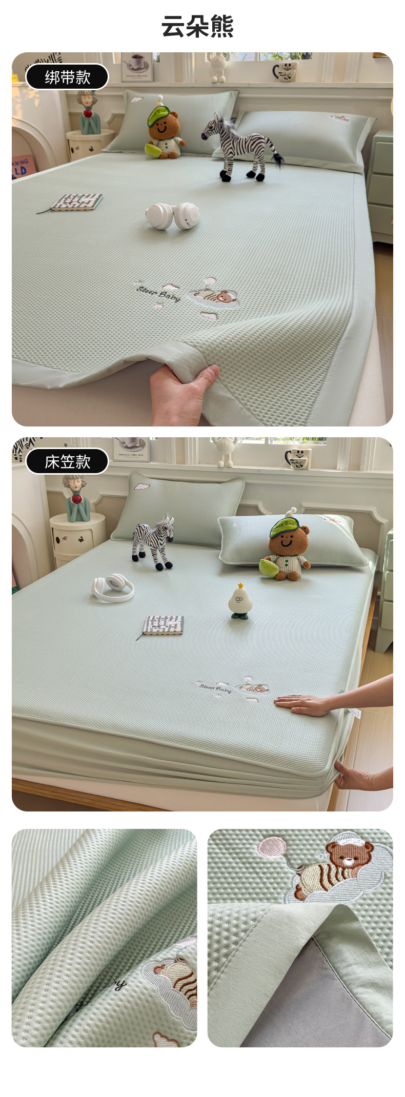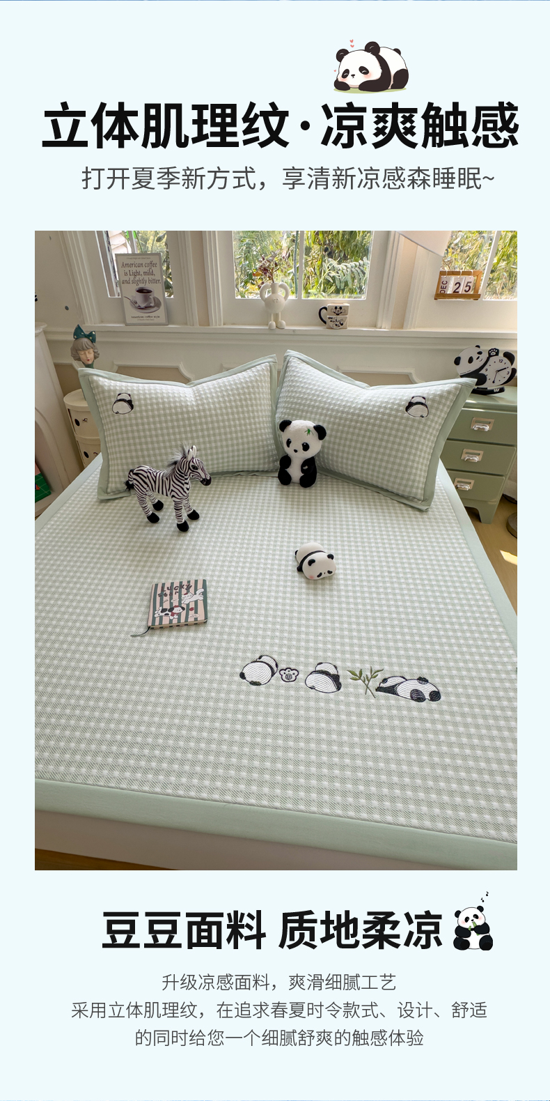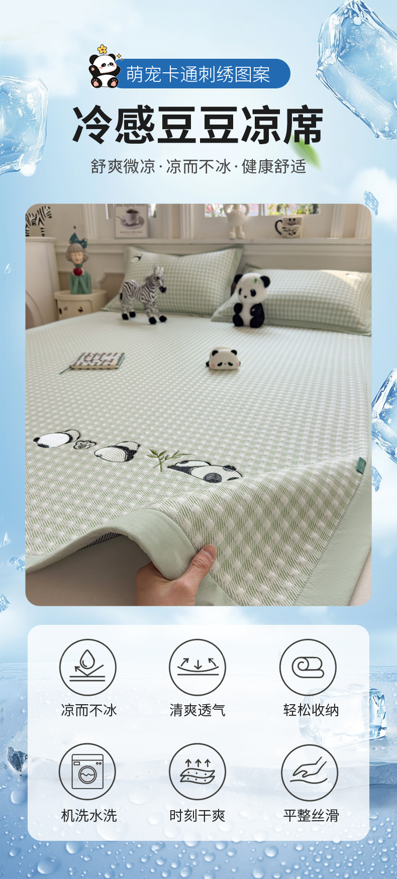 (总)席世家 2025新款A类凉感冰豆豆凉席-花卉卡通系列,呆萌熊猫,绿意,萌兔,小熊-粉,小熊-蓝,花漾