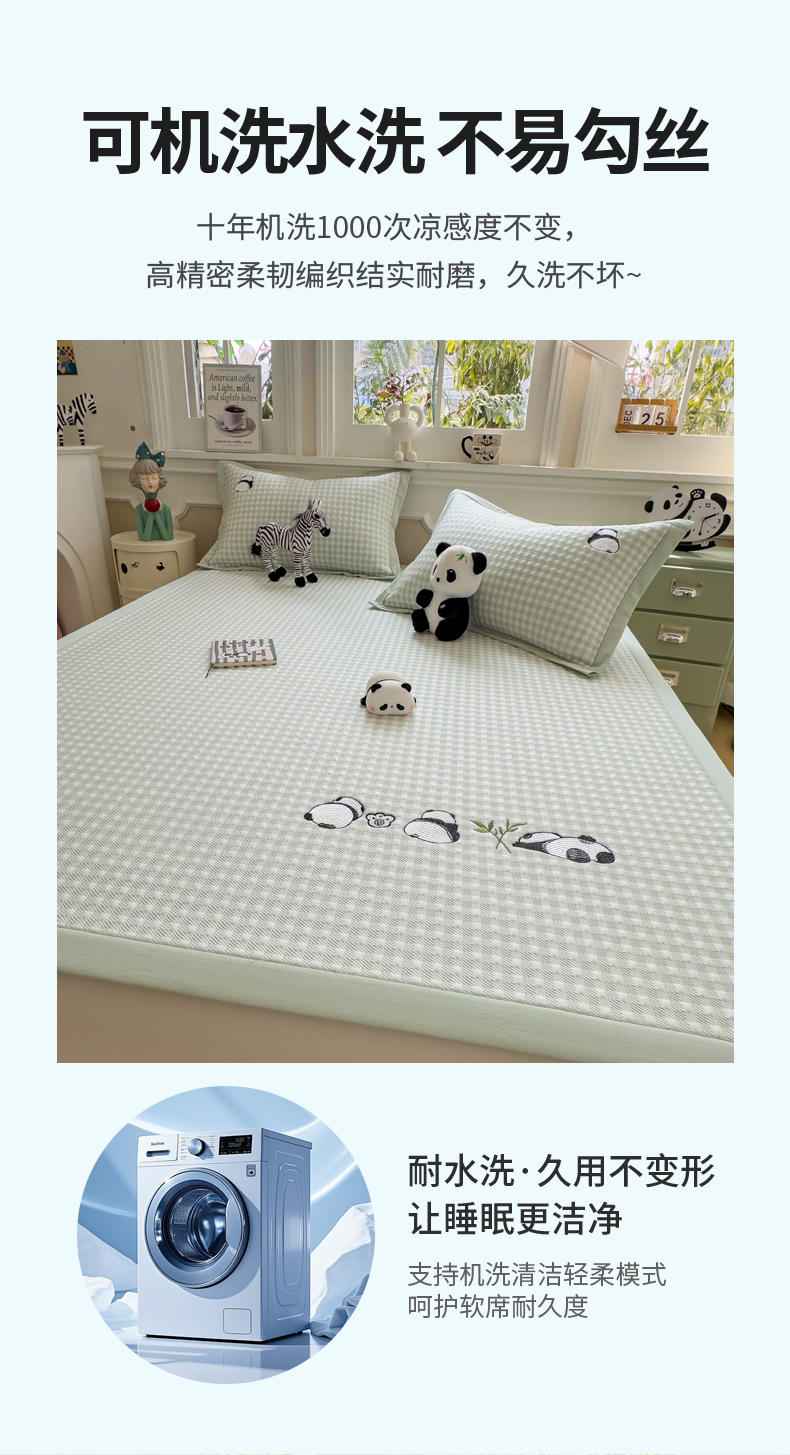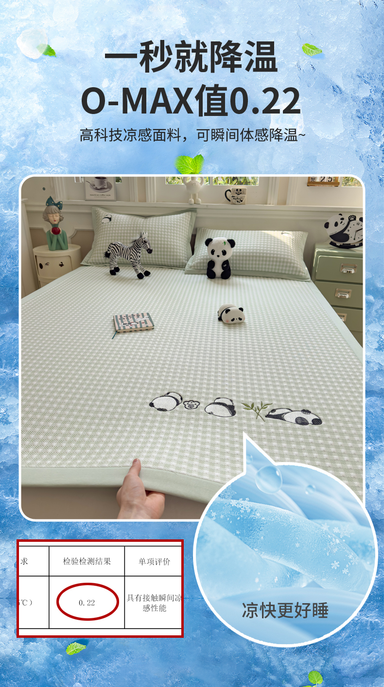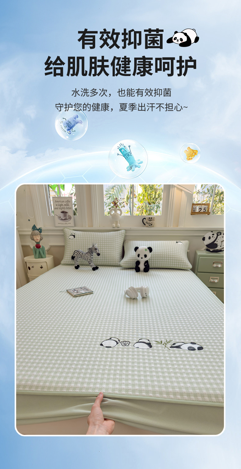 (总)席世家 2025新款A类凉感冰豆豆凉席-花卉卡通系列,呆萌熊猫,绿意,萌兔,小熊-粉,小熊-蓝,花漾