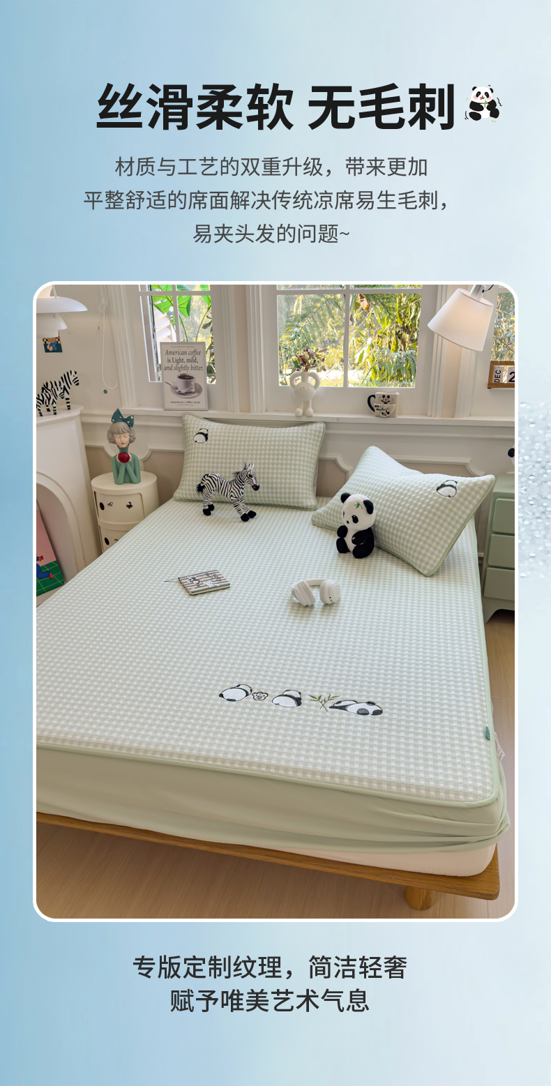 (总)席世家2025新款满天星绣花豆豆席,嗨皮熊猫,凉喵喵,俏皮狗,小熊树,长耳兔