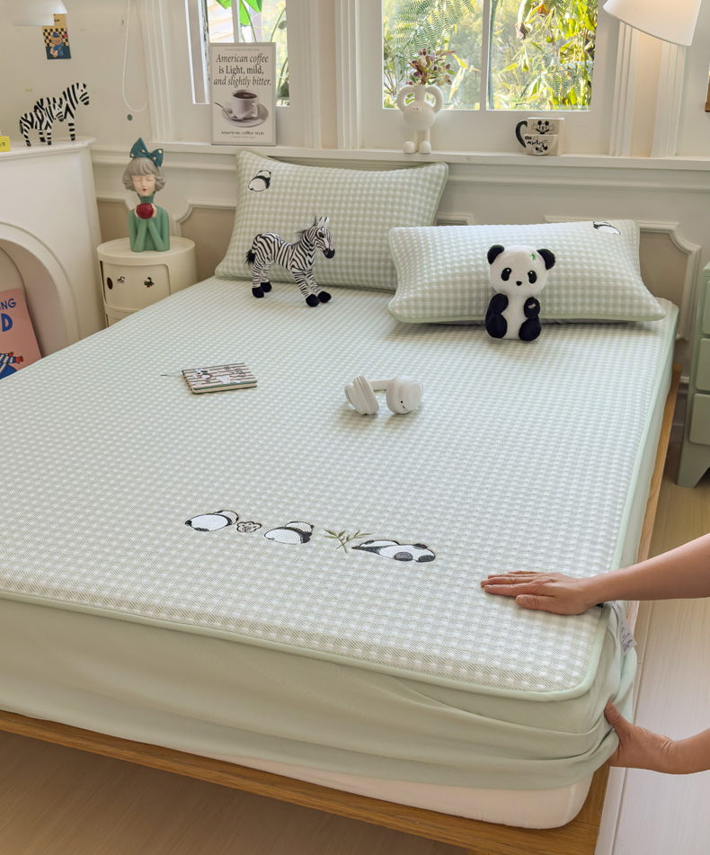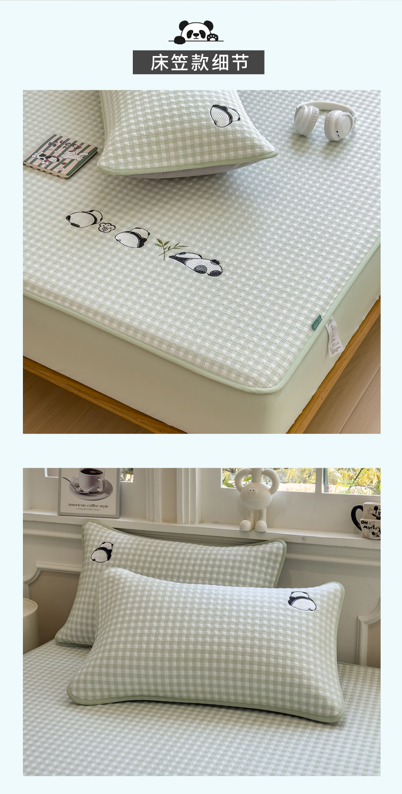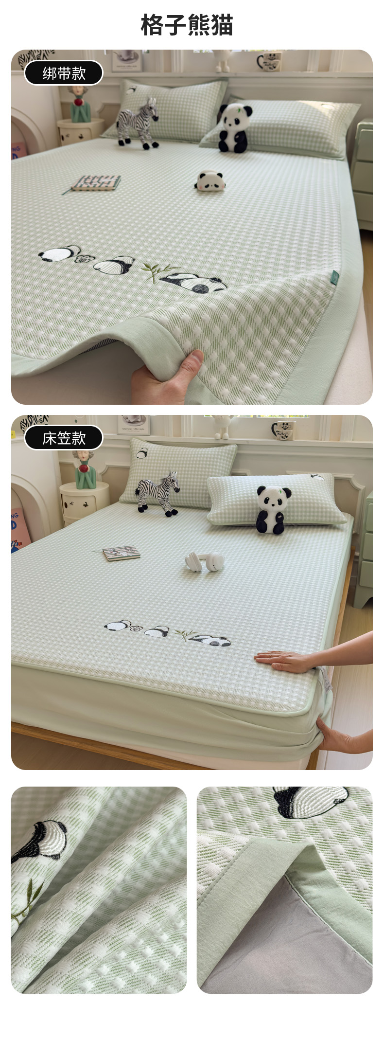 (总)席世家 2025新款绣花凉感床笠(控价198 218),格子熊猫,格子熊猫