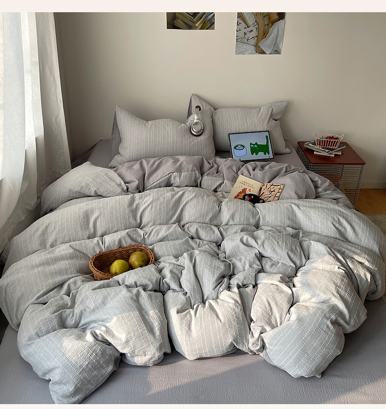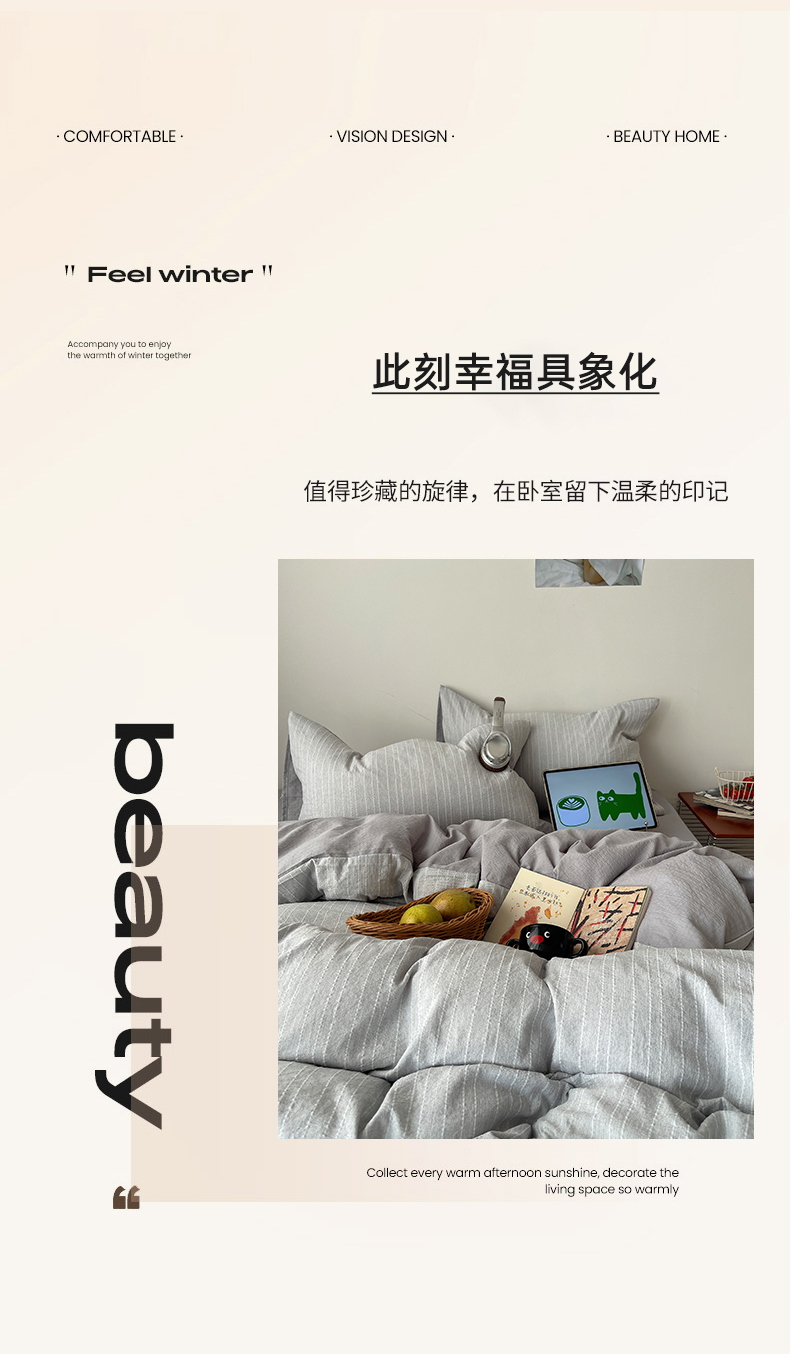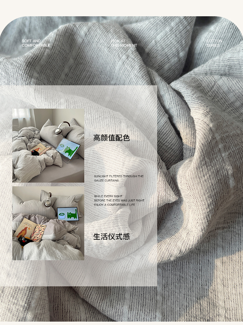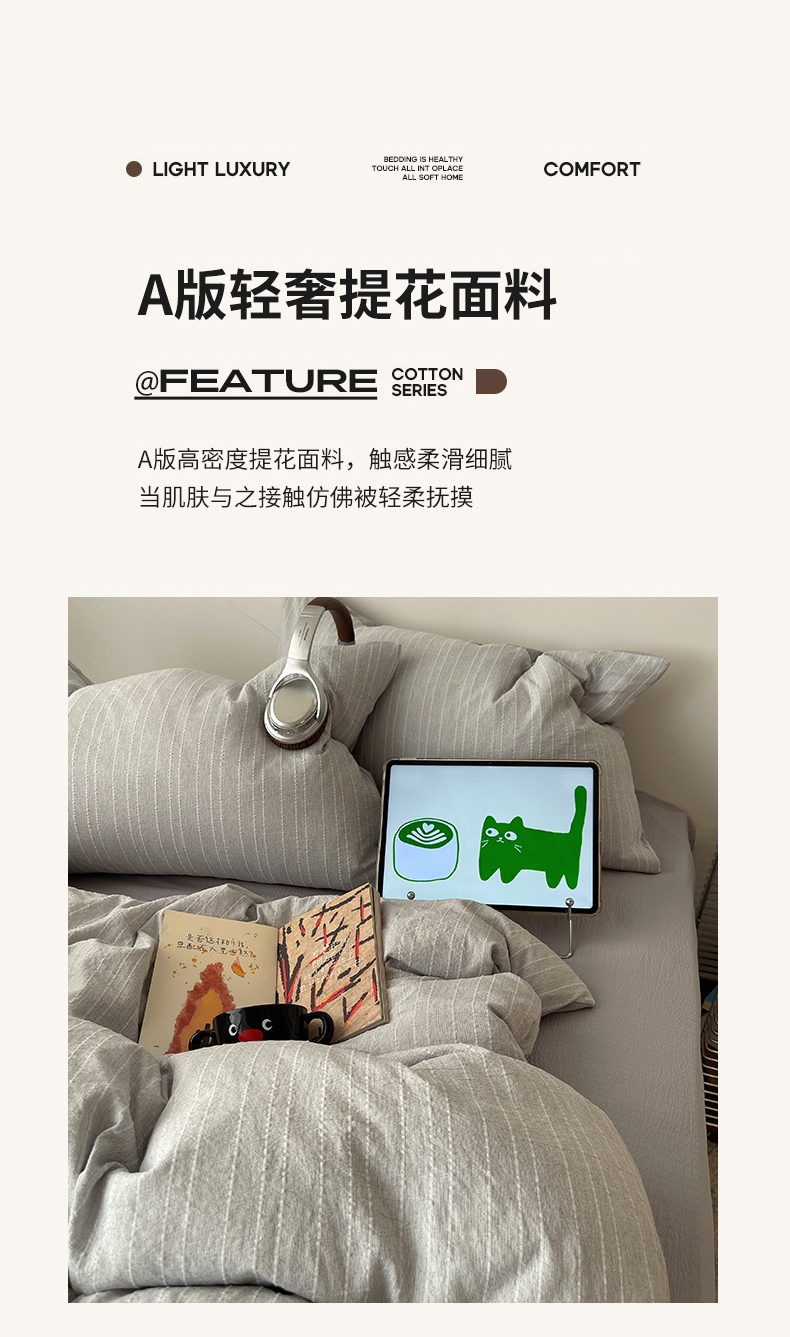商品名称:栩裕纺织 2026新款高克重无印风阳离子提花工艺四件套 轻奢风-高级灰