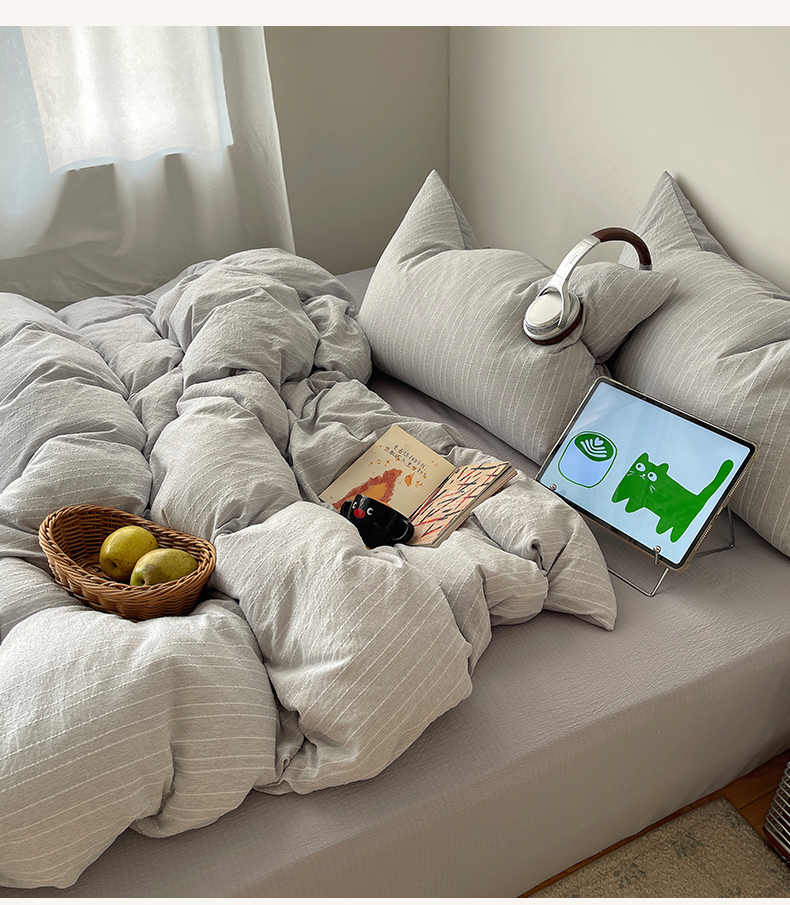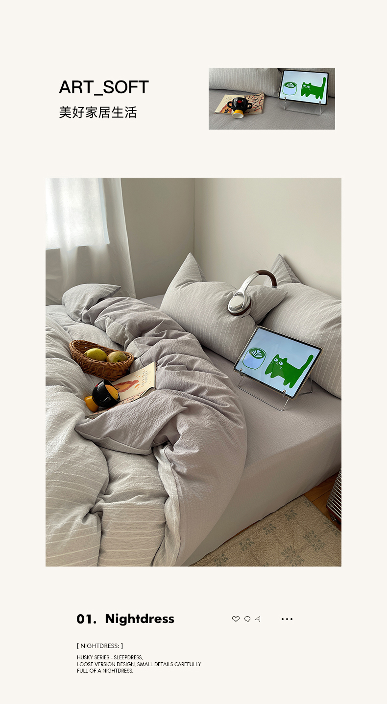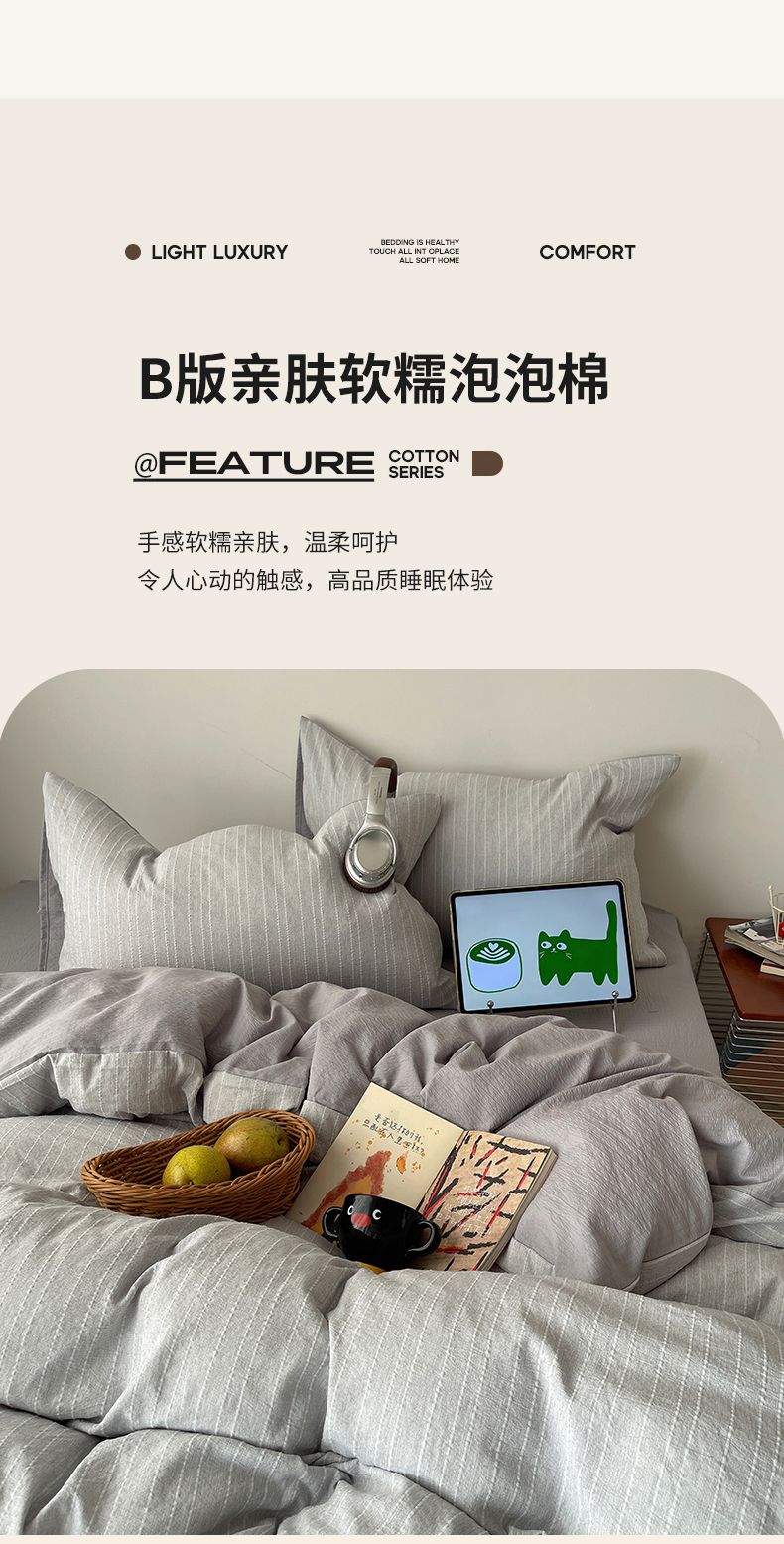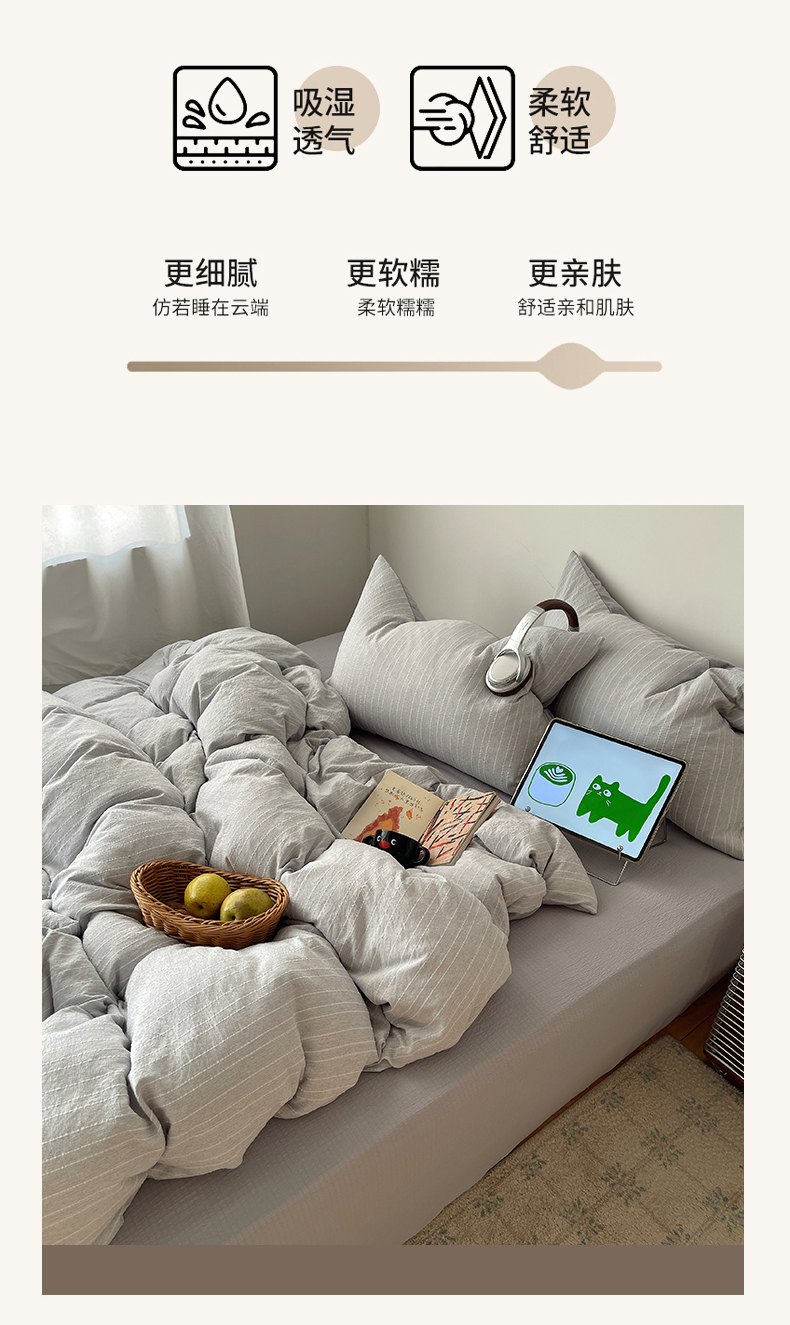 商品名称:栩裕纺织 2026新款高克重无印风阳离子提花工艺四件套 轻奢风-高级灰