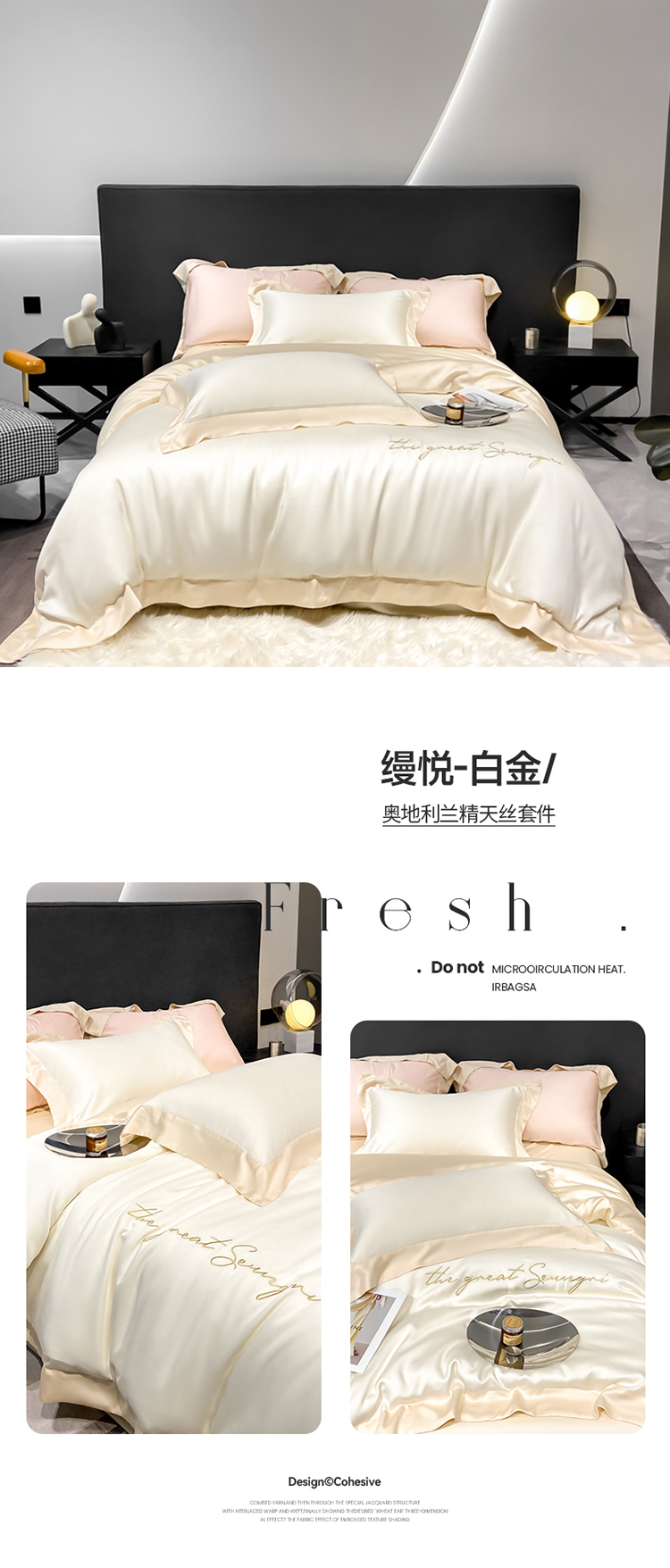 商品名称:(总)高档礼盒装春夏新品超细旦冷凝天丝刺绣四件套100%莱赛尔
