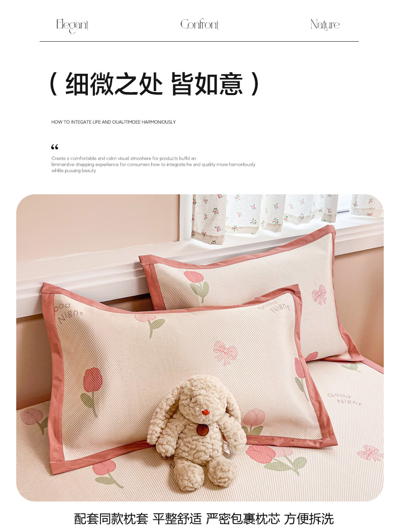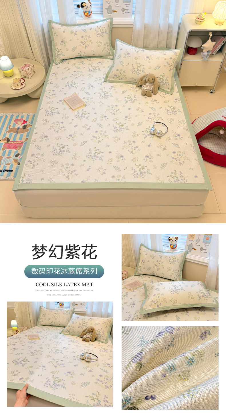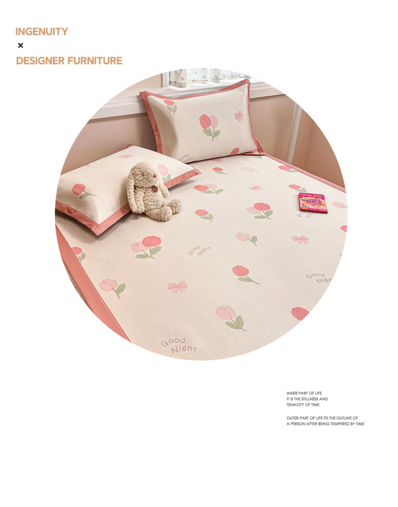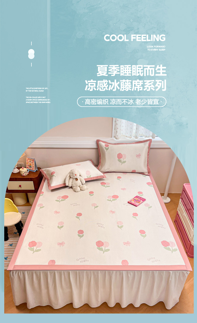 慕尚家纺 2026新款清新凉感冰藤席平铺款 蝴蝶结郁金香