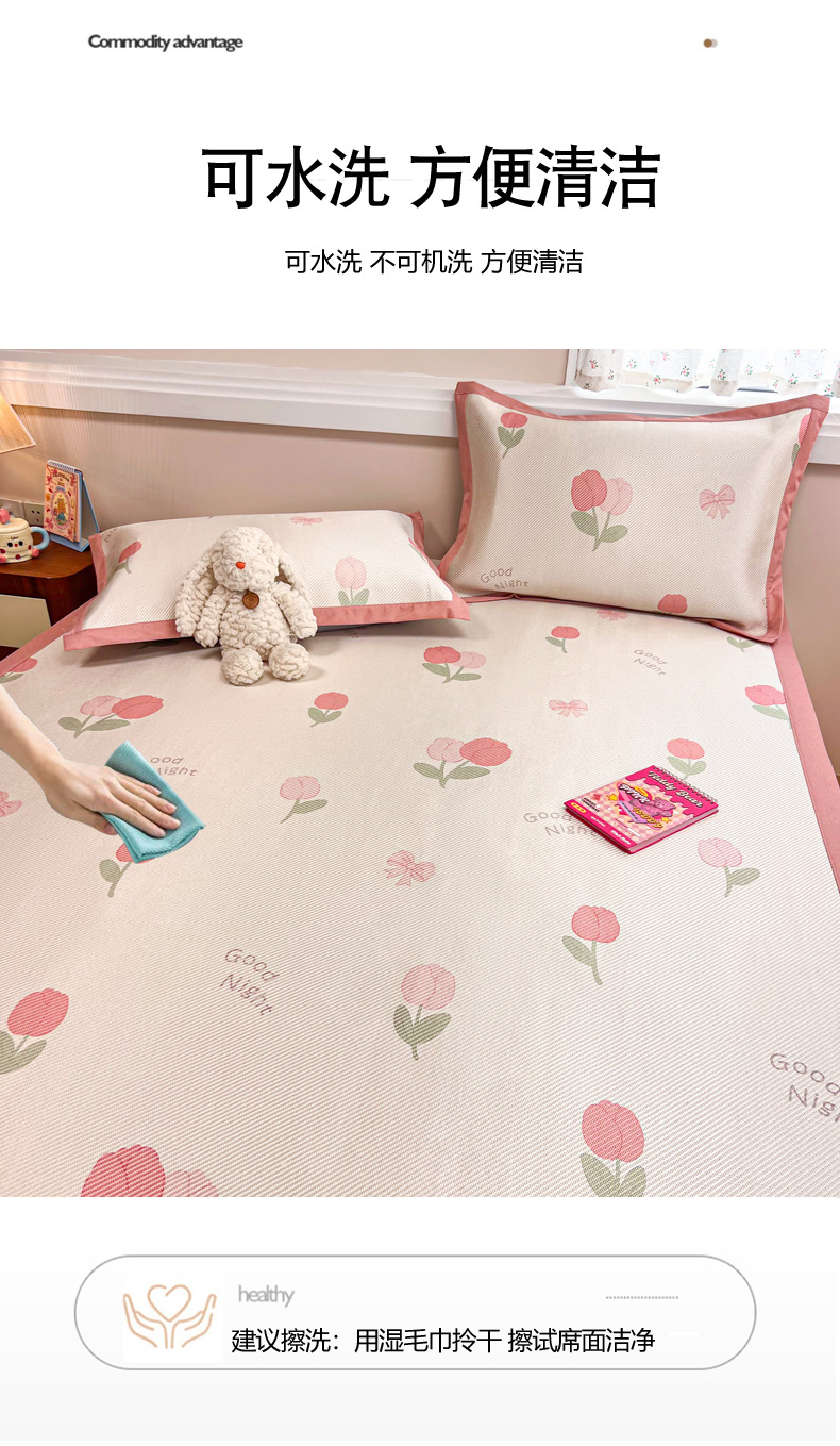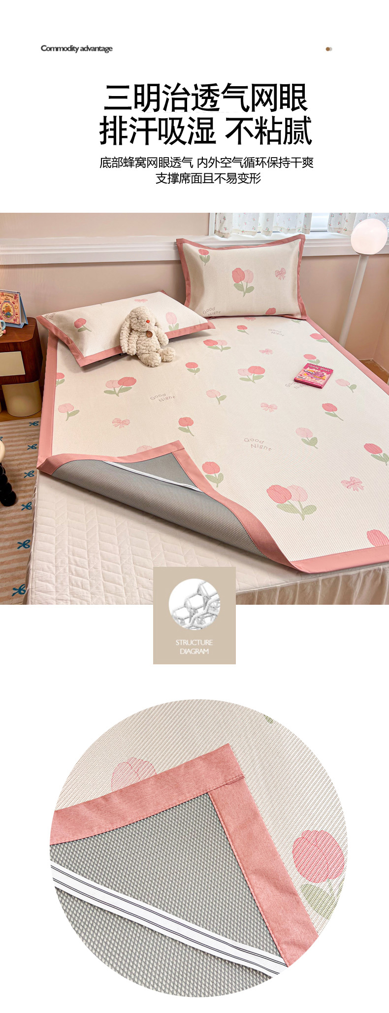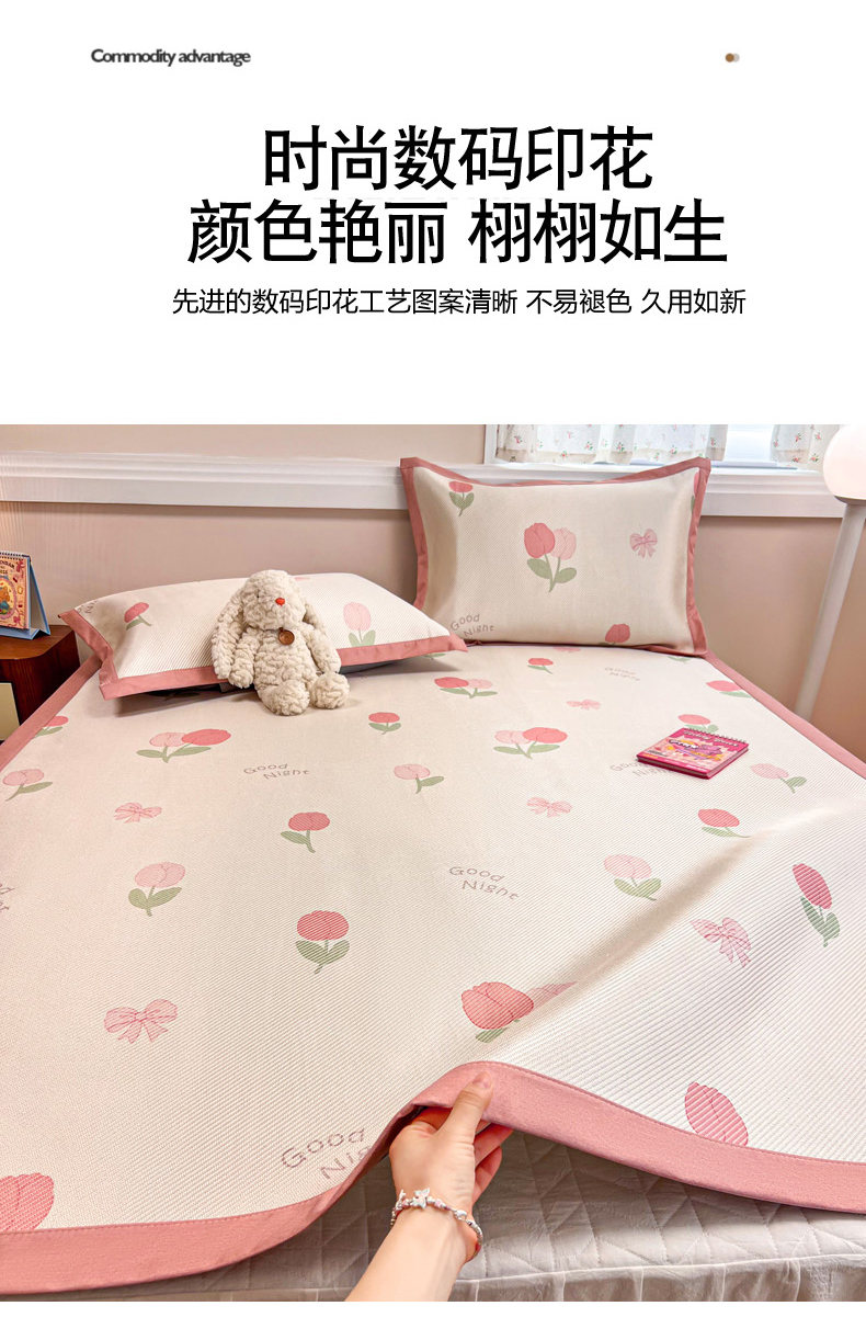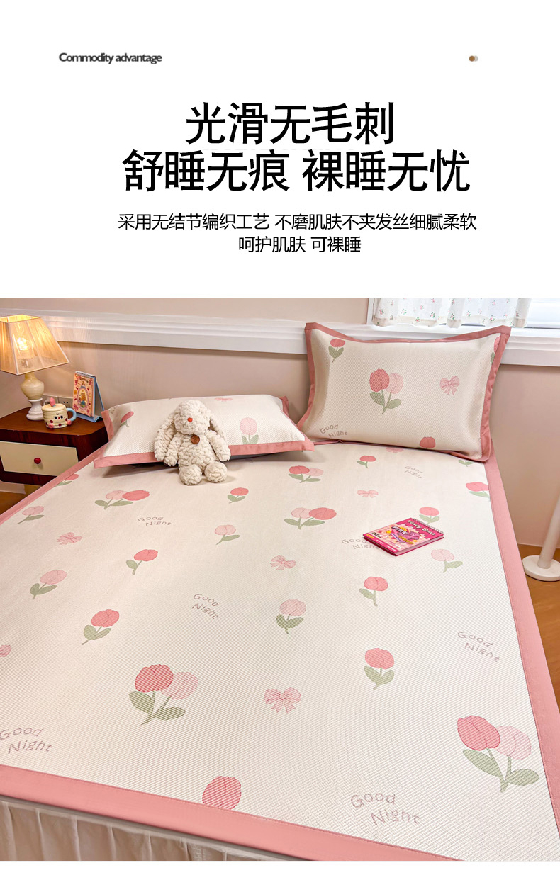 商品名称:慕尚家纺 2026新款清新凉感冰藤席平铺款 蝴蝶结郁金香