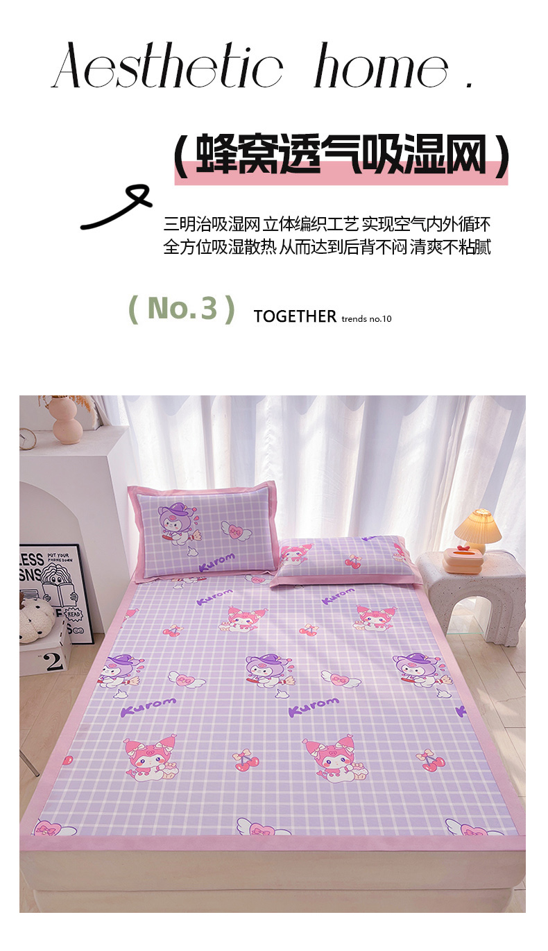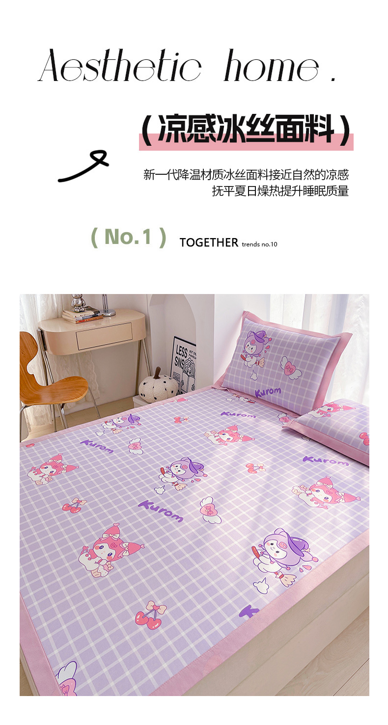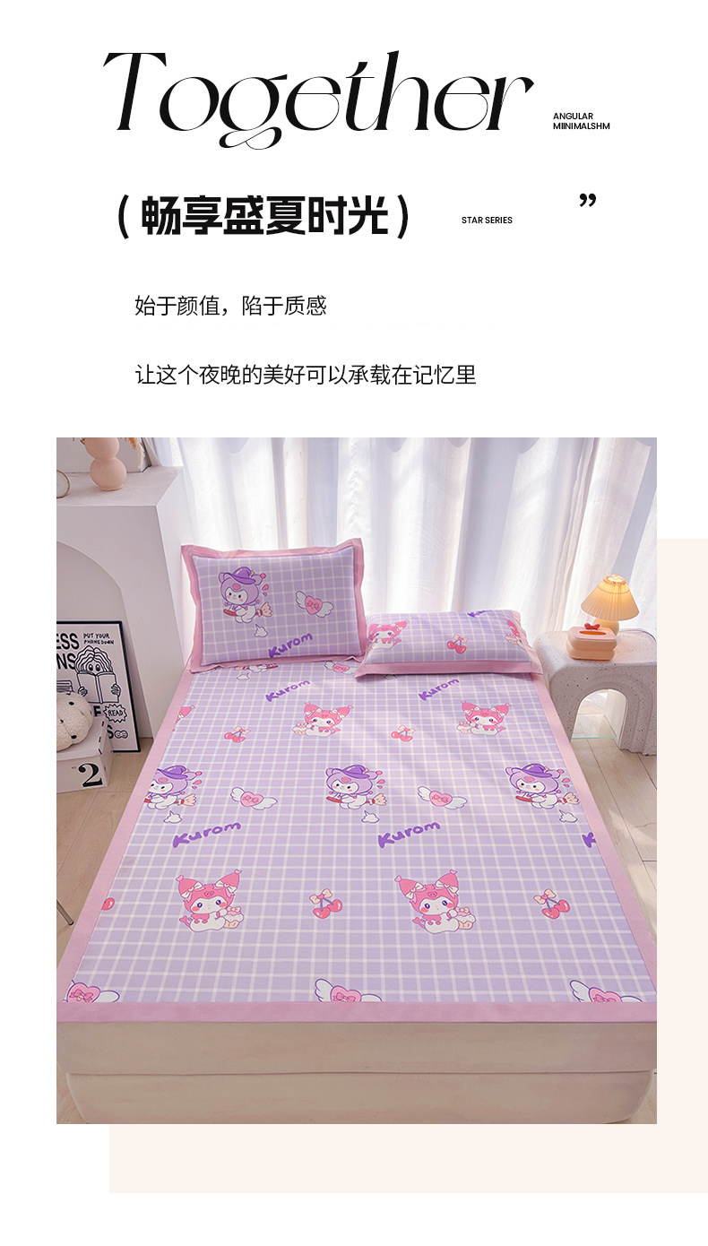 商品名称:云恋家纺 2026正版授权小版冰丝席卡通凉席三件套可折叠水洗软席子儿童单双人凉感空调席子 小版-格格库洛米