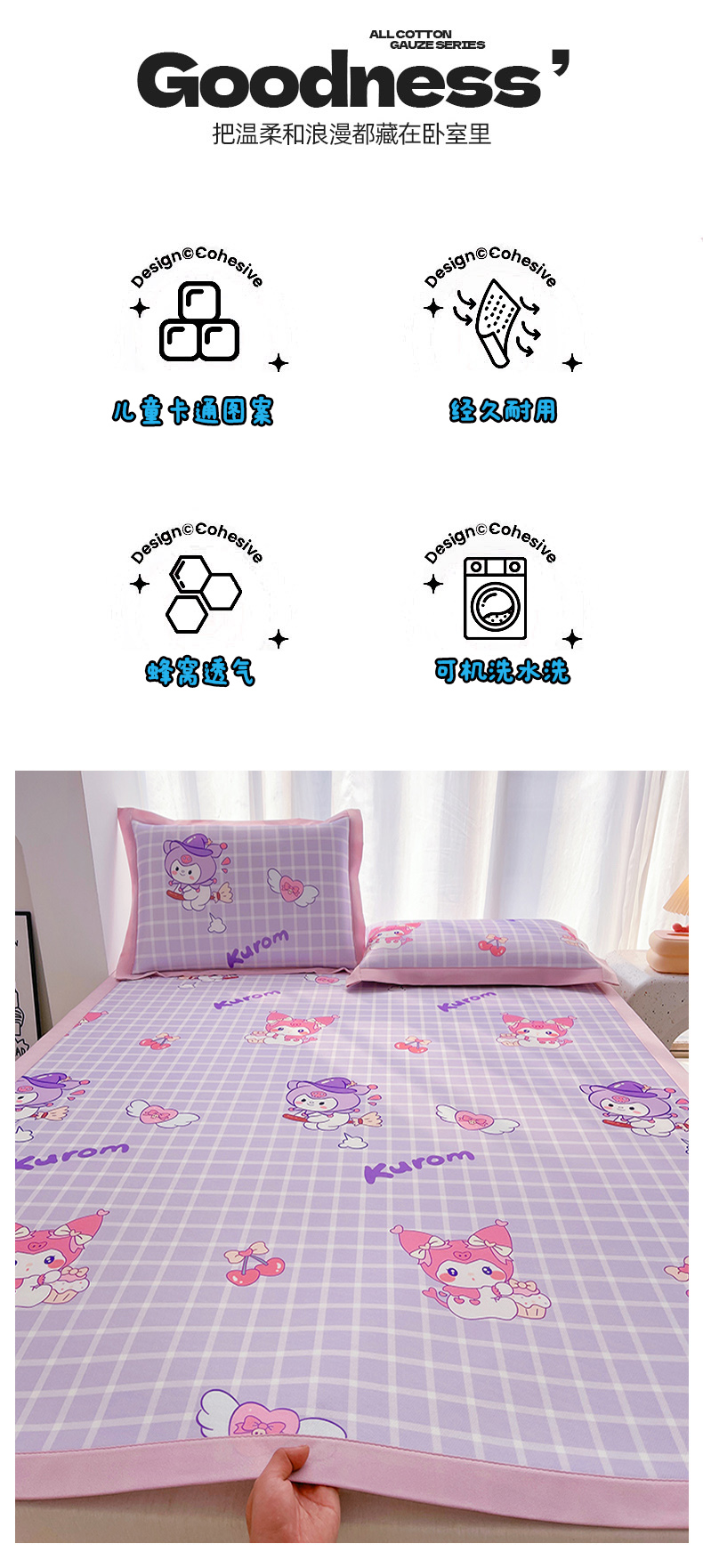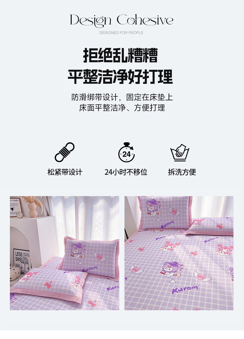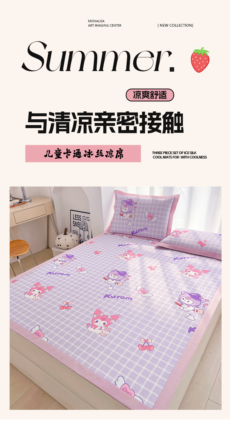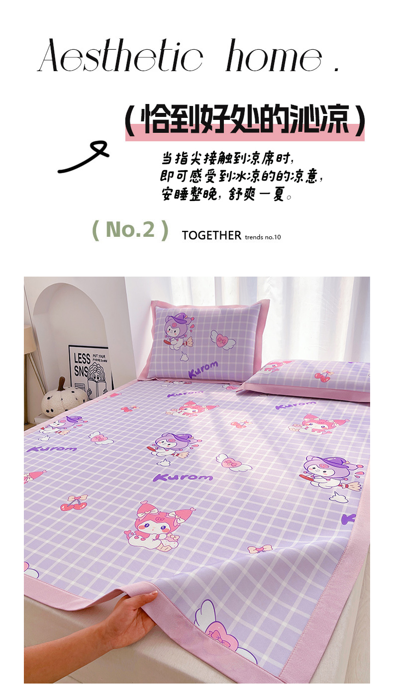 商品名称:云恋家纺 2026正版授权小版冰丝席卡通凉席三件套可折叠水洗软席子儿童单双人凉感空调席子 小版-格格库洛米