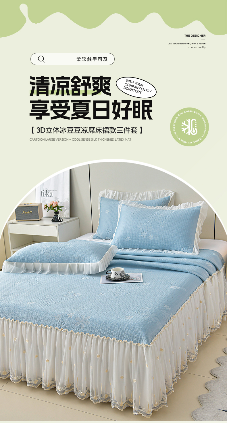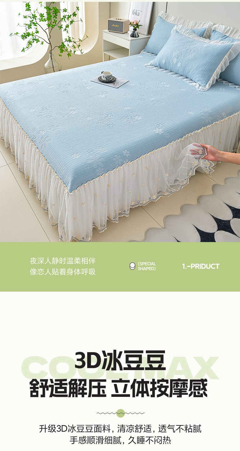 (总)畅畅家纺 2026新款花边3D立体冰豆豆冰丝凉席床裙款三件套,漫舞-粉,漫舞-灰,漫舞-蓝,漫舞-绿,幸运花朵-粉,幸运花朵-灰,幸运花朵-蓝,幸运花朵-绿
