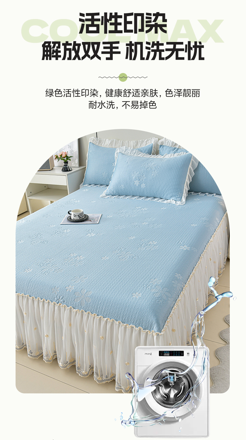 (总)畅畅家纺 2026新款夏季冰豆豆PE高分子凉感印花床裙款空调软凉席三件套,花韵-粉,花韵-灰,花韵-蓝,意境-粉,意境-灰,意境-蓝,意境-绿