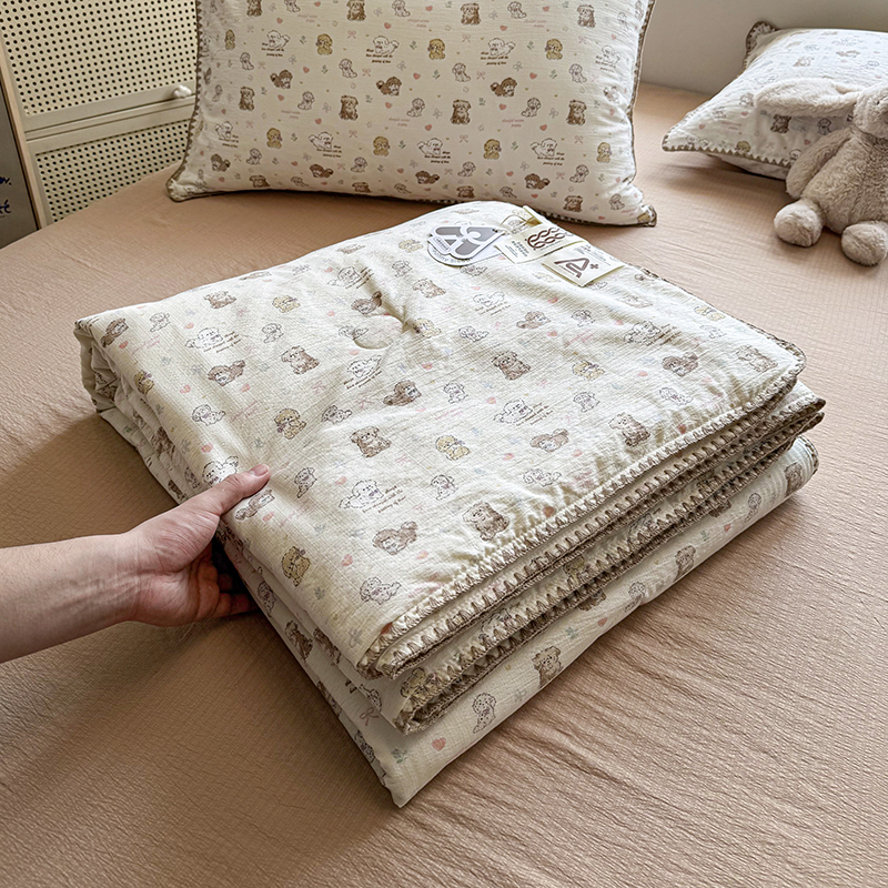 (总)晚爱 2026新款泡芙棉双层纱夏被四件套小清新泡泡纱夏被四件套,1软萌星,2星宝贝,3珍珠奶茶,4豹纹凯蒂,5喵星人,6格纹狗,7芋泥波波,8费尔岛小狗,9蓝雪花,10春风拂梦,11甜心小兔 主,12大熊猫