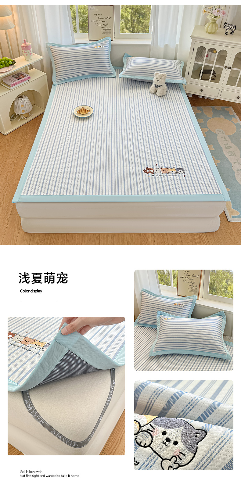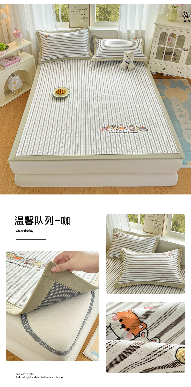 (总)蓝邻家纺 2026春夏新款PE提花贴布绣凉席席子-场景一,萌跃-粉,萌跃-咖,甜帚,笑果,星绒,组合图仅供展示不可下单