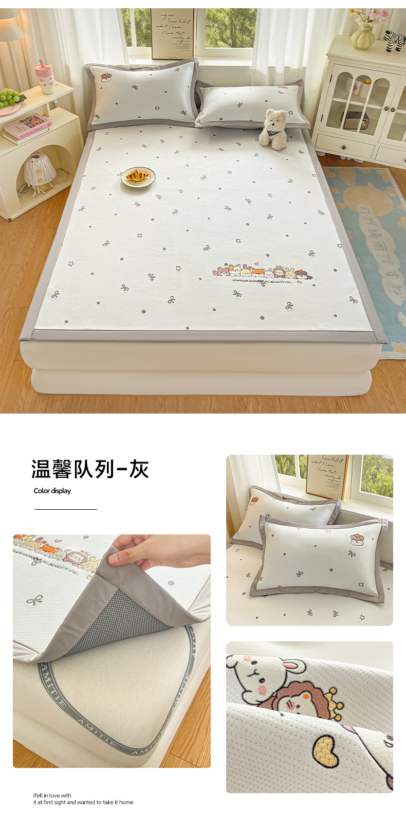 (总)蓝邻家纺 2026春夏新款PE提花刺绣凉席席子系列-场景一,玫瑰园,萌宠礼,浅夏萌宠,温馨队列-灰‘,温馨队列-咖,艺宁