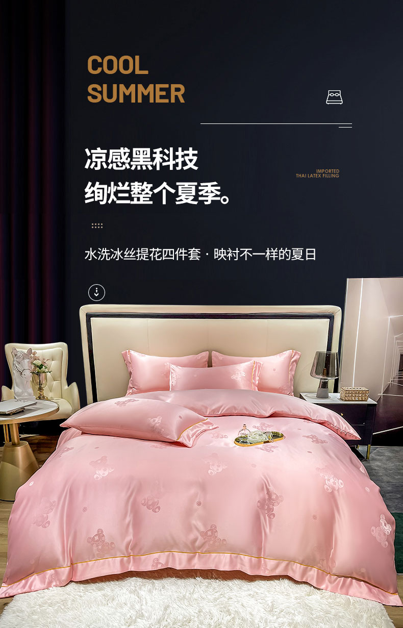 (总) 新25 经年2025年 水洗真丝冰丝天丝提花四件套直播爆款 格林系列 ,格林-宝蓝,格林-粉玉,格林-浅灰,格林-天蓝,格林-香槟