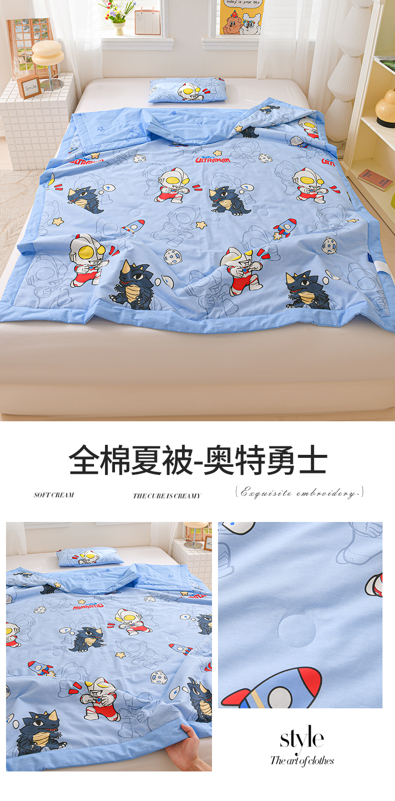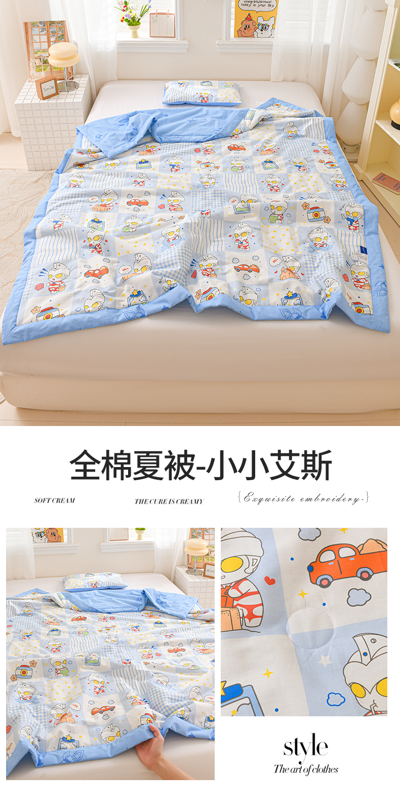 (总)名兮家居 2026新款经典奥特曼儿童全棉夏被夏凉被空调被【含防伪标】,全棉夏被-艾斯奥特曼,全棉夏被-奥特勇士,全棉夏被-呆萌kt,全棉夏被-光线王子,全棉夏被-魔法美乐蒂,全棉夏被-甜筒库洛米,全棉夏被-小小艾斯,全棉夏被-星星奥特曼,组合图仅供展示不可下单
