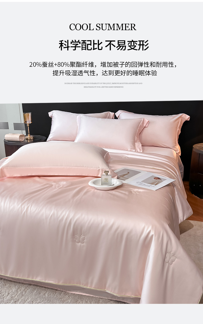 当前位置: 91家纺网 > 商品网购 > 被子 > 莱赛尔夏被 > 新方向 2026新款A类20%蚕丝天丝棉夏被四件套蝴蝶系列 蝴蝶-山茶粉