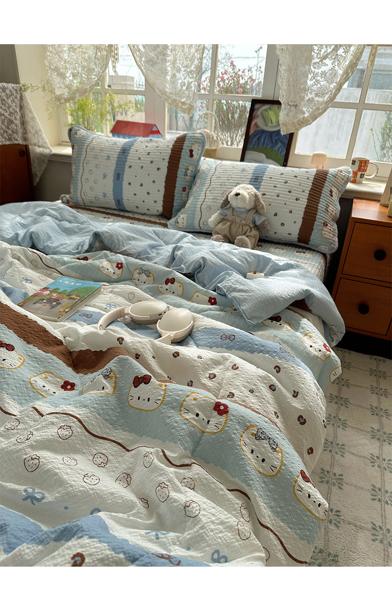 当前位置: 91家纺网 > 商品网购 > 床品套件 > 四件套 > 夏被四件套 > 初念 2026新款高品质A类泡芙纱床盖夏被四件套-青提系列(晚风渐热,温柔续夏) 青提-可可小猫条