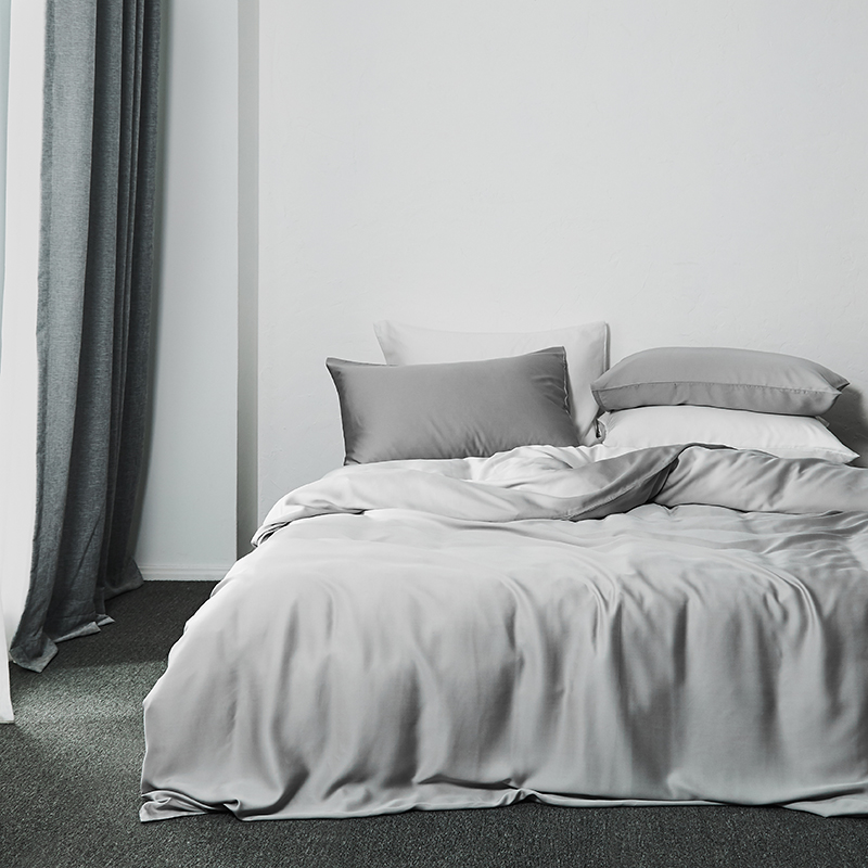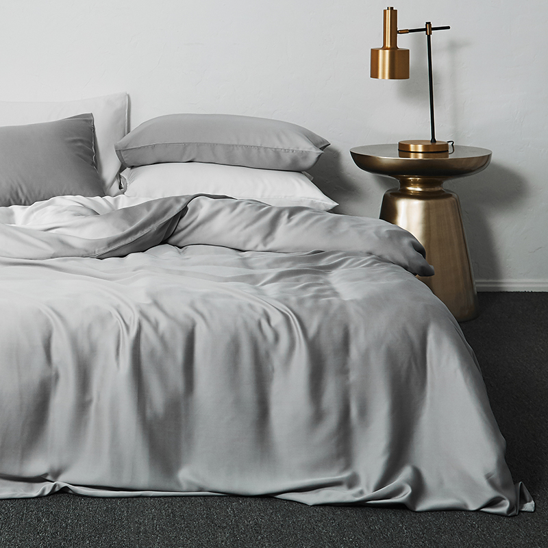 涞澳家纺 2018新款素色天丝四件套 烟灰