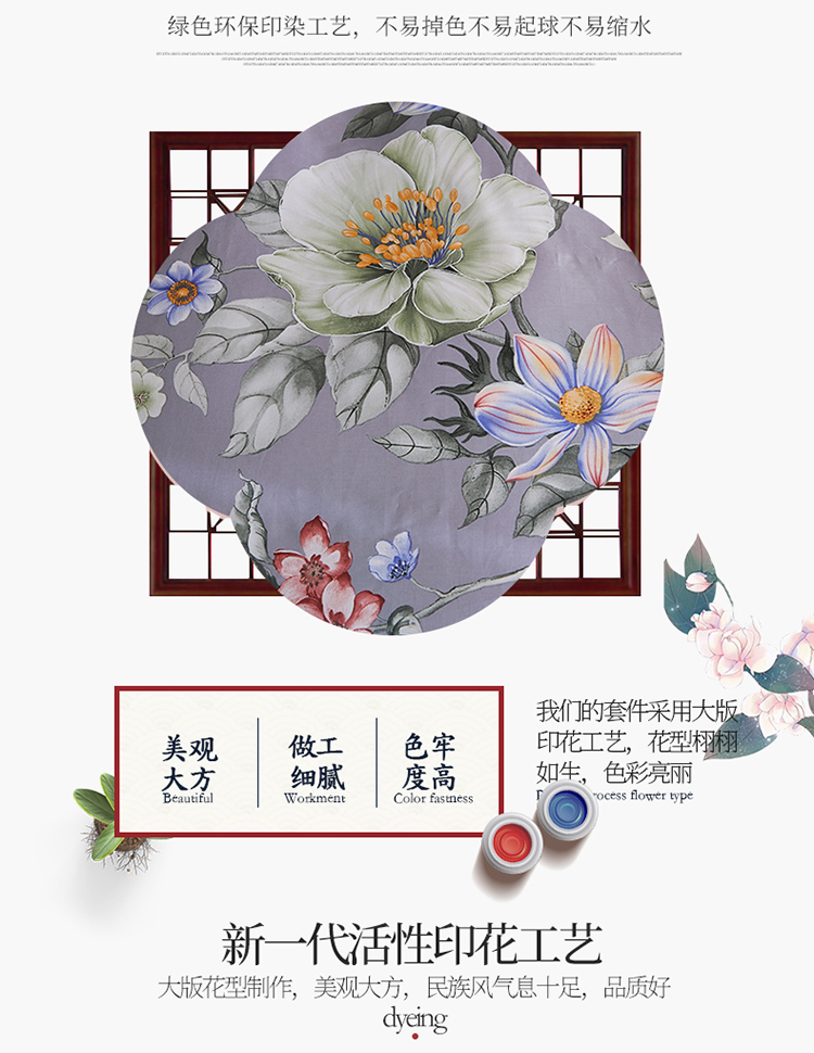 商品名称:雲归梦 2019全棉活性大版中国风花卉四件套 盛世牡丹
