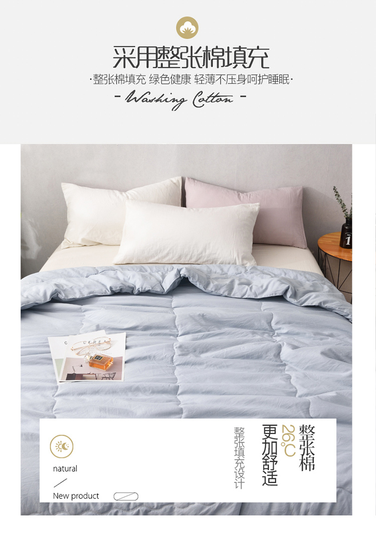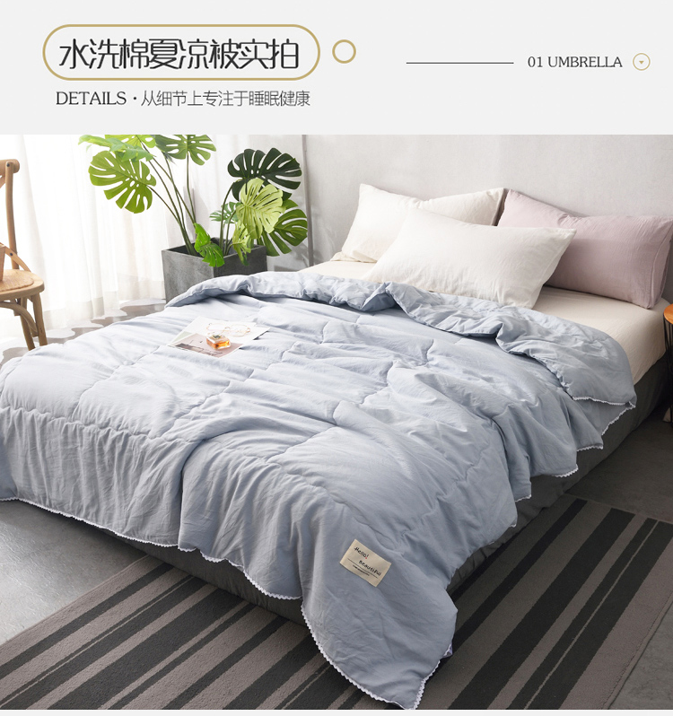 (总)德芙 2023新款水洗棉斜纹夏被,海藻绿Seaweed green,湖蓝Lake blue,兰灰Blue grey,木槿紫Mauve,牛奶白Milk,西瓜红Watermelon red