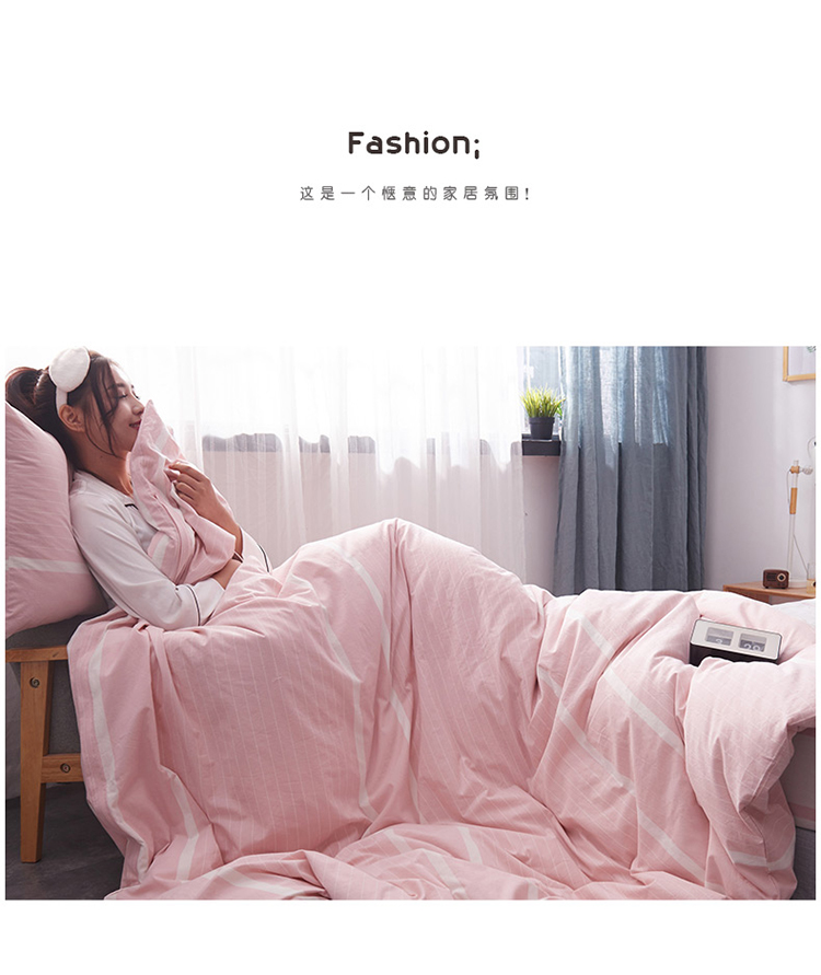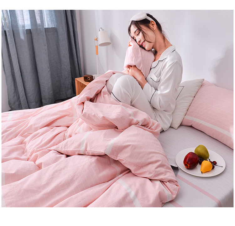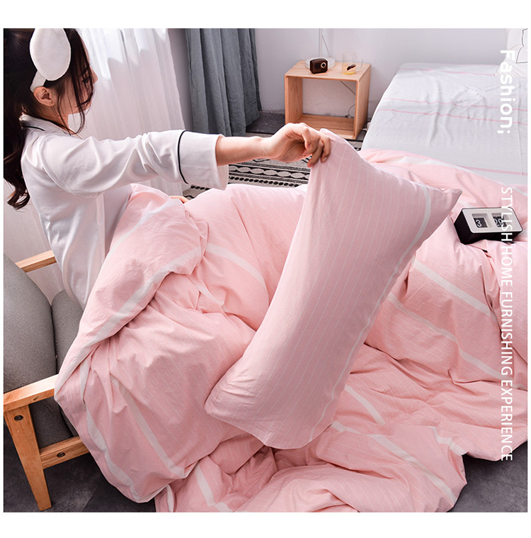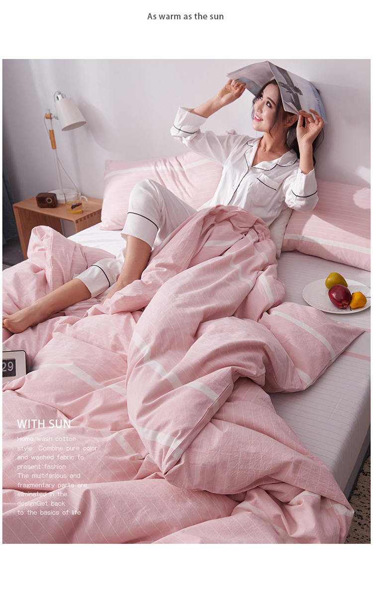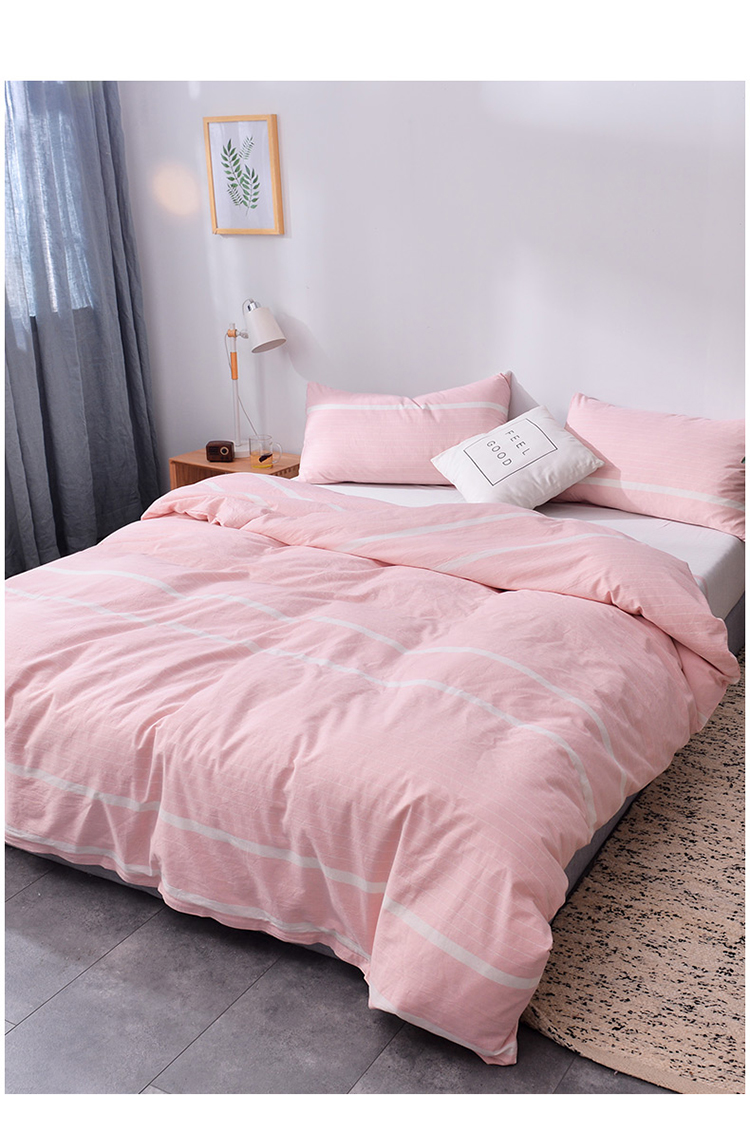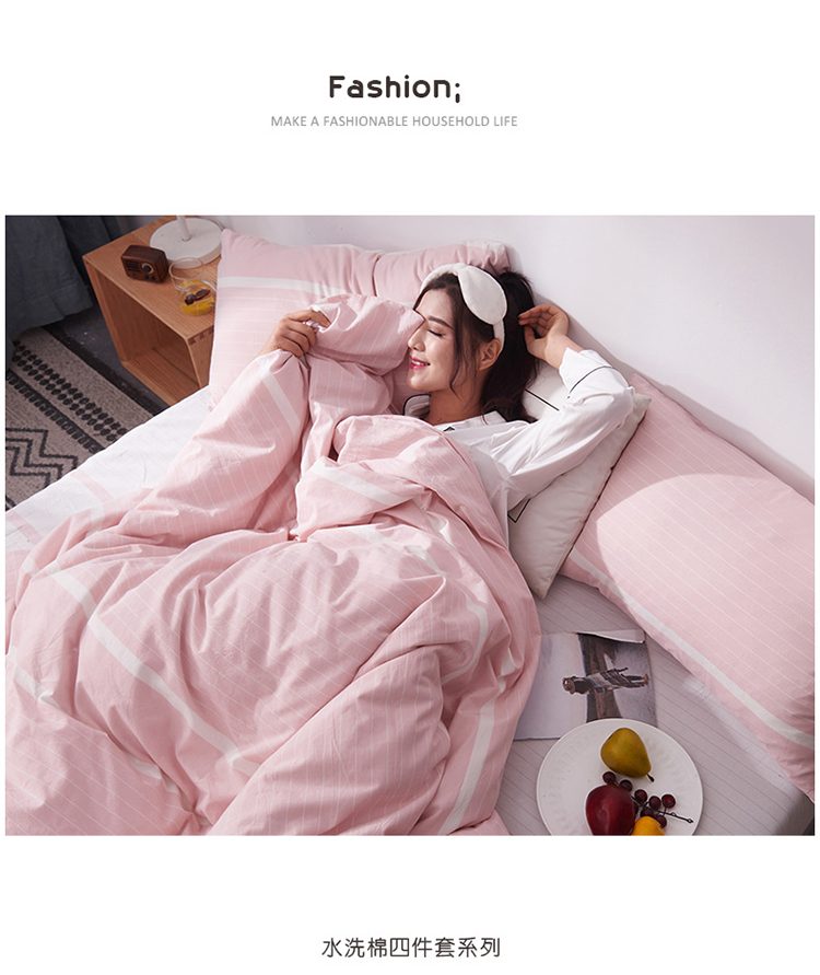 柠萌家居新款全棉色织水洗棉无印良品四件套床单款宽双线-粉白条