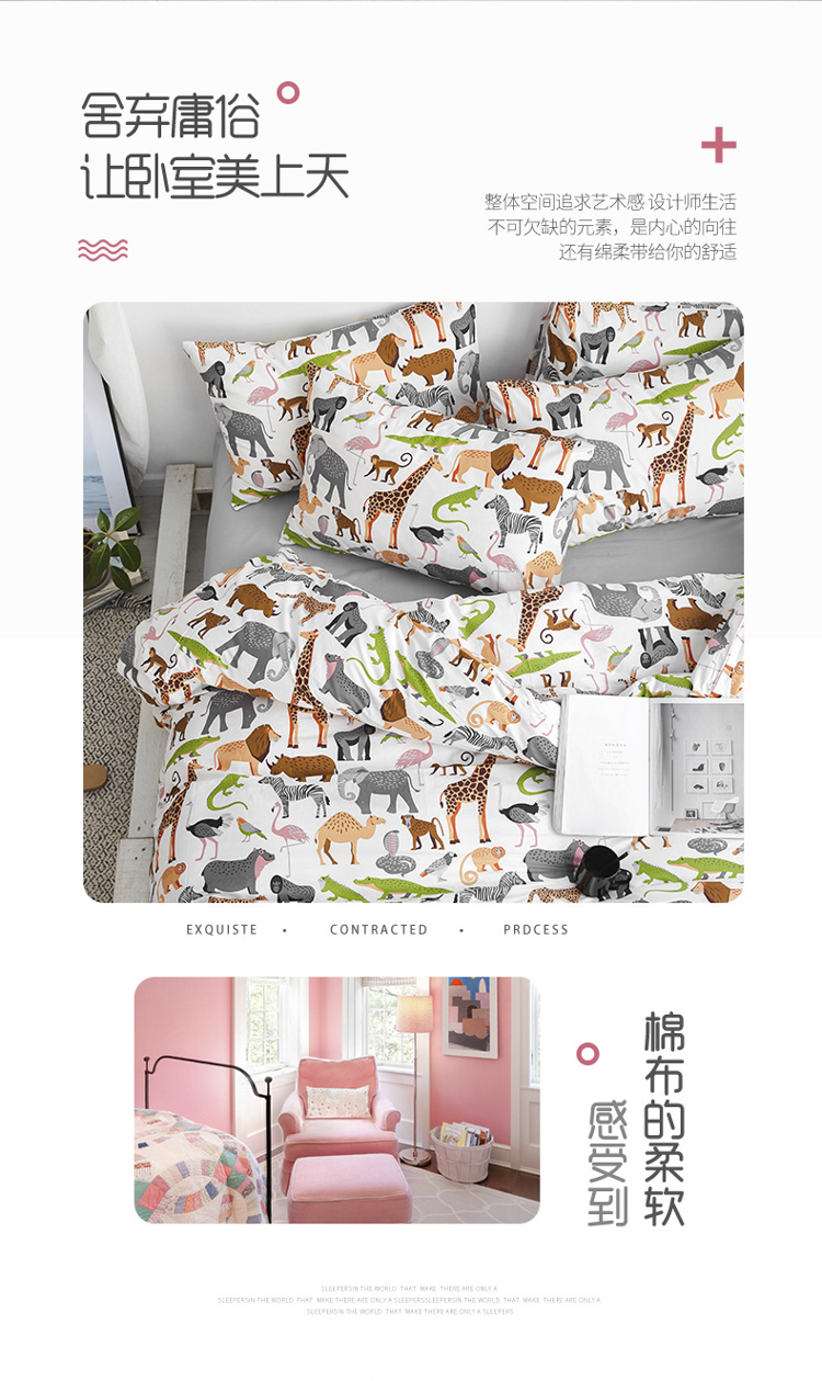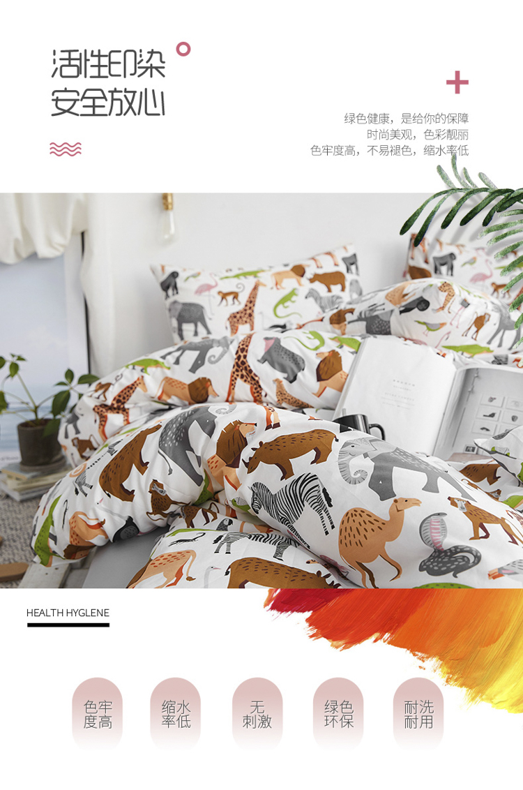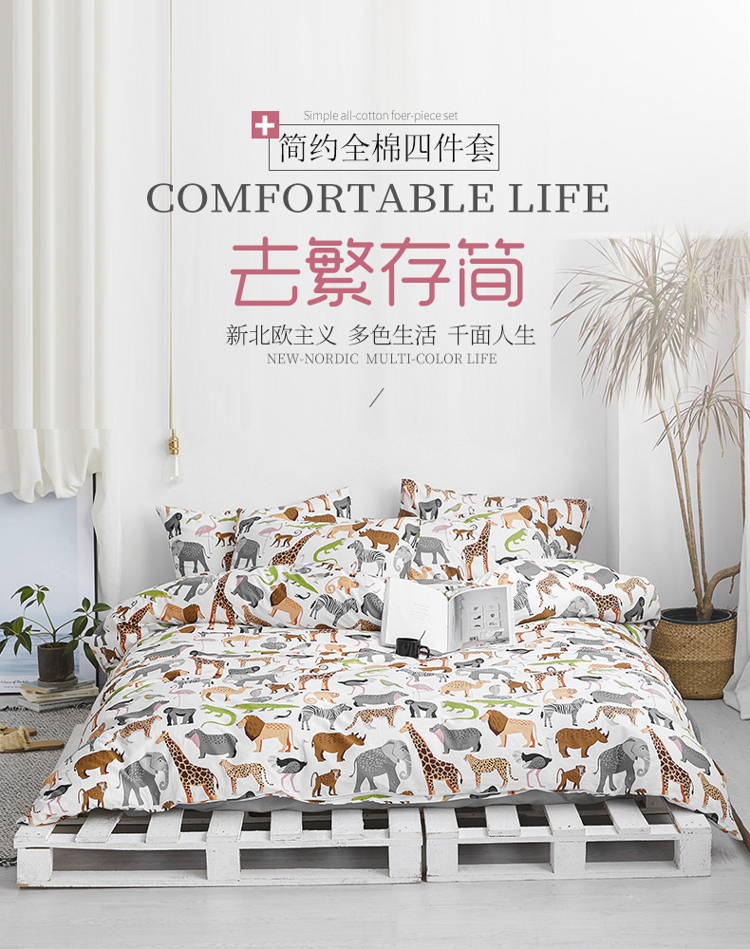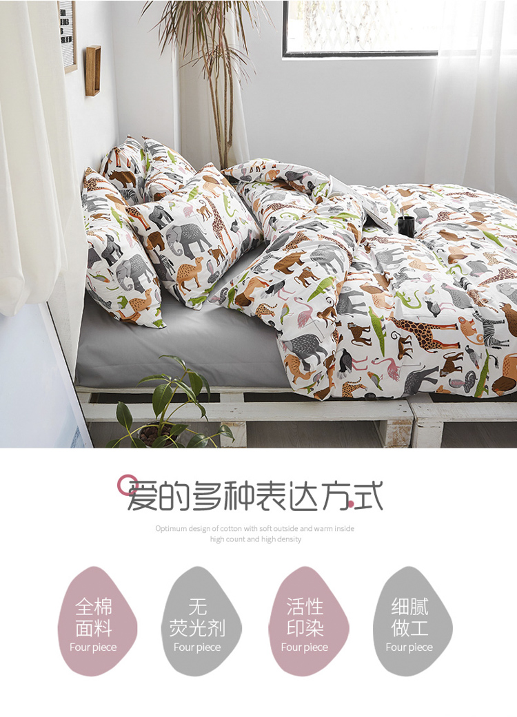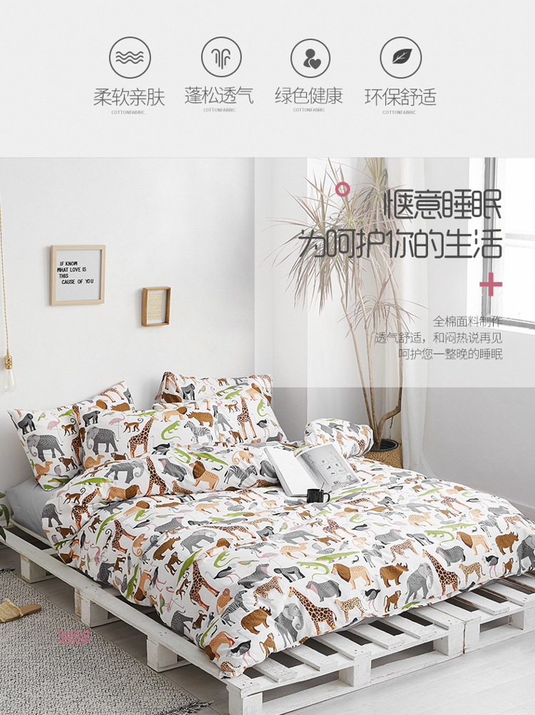 棉眠 2019新款13070简约全棉四件套 马达加斯加
