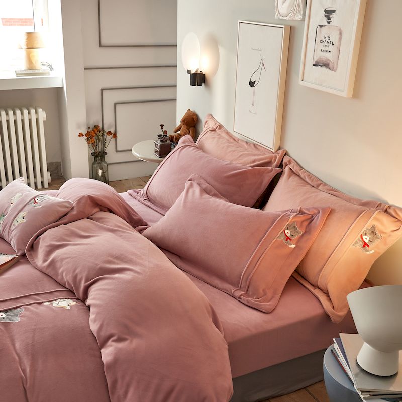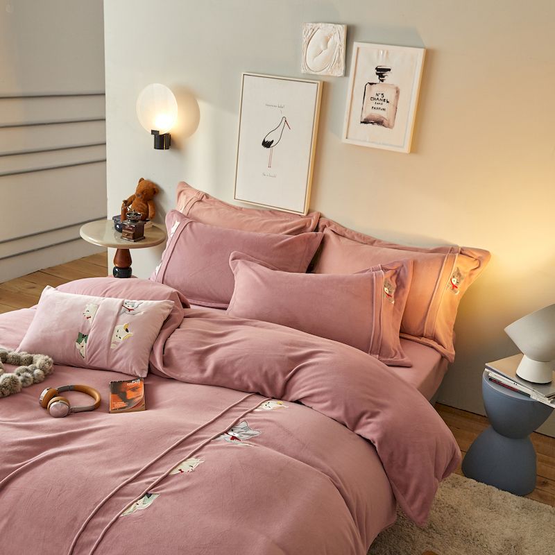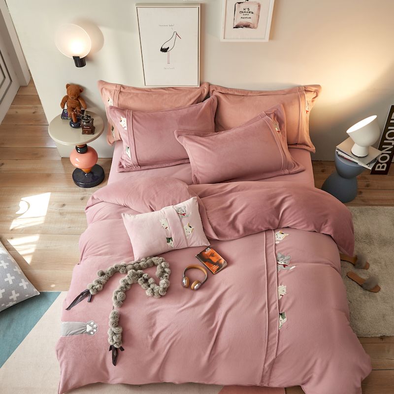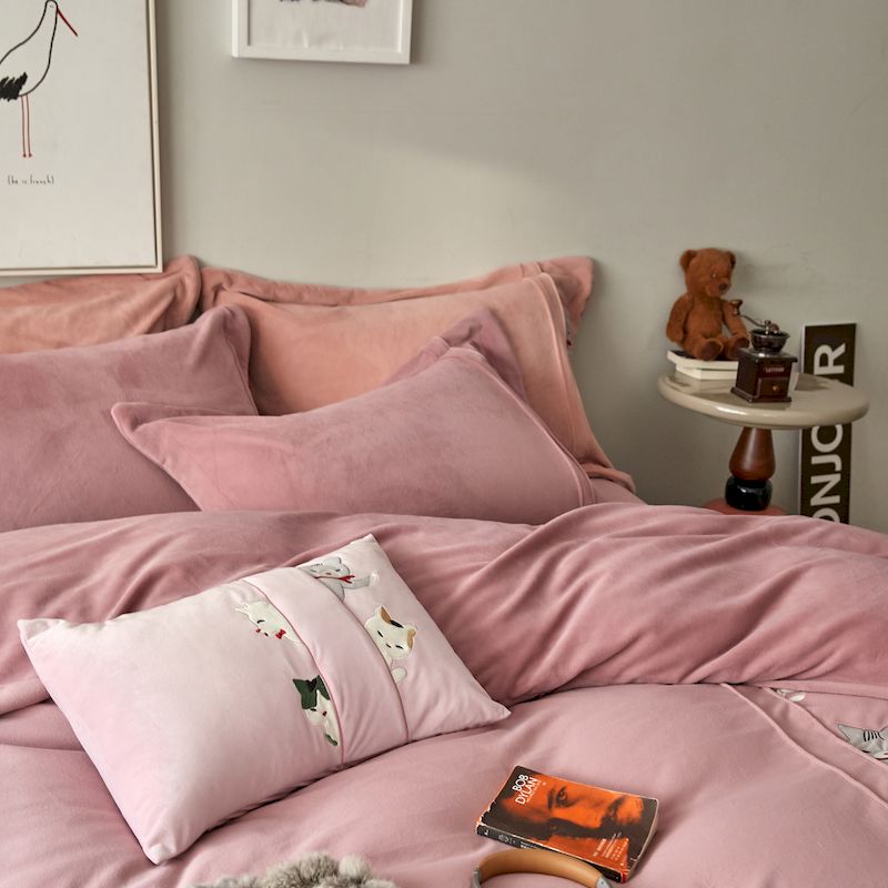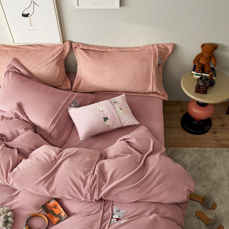 涞澳 2019新款美绒系列四件套 猫咪—豆沙