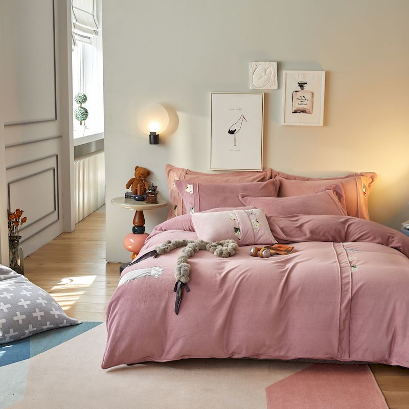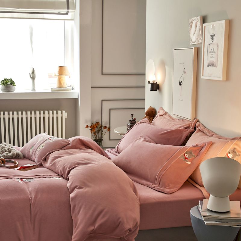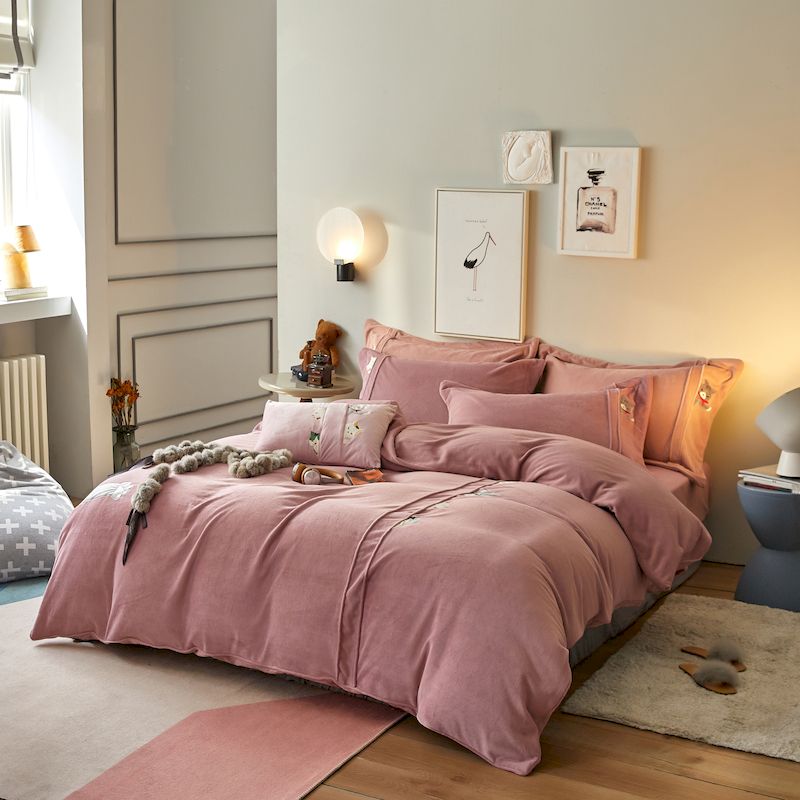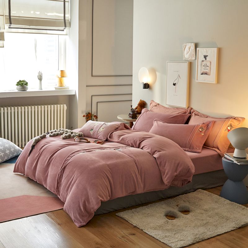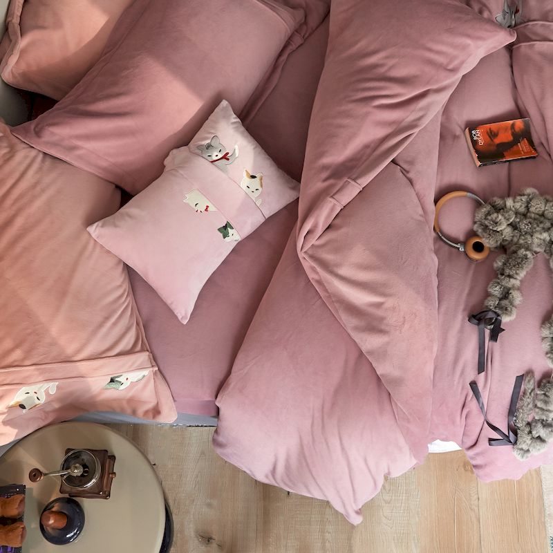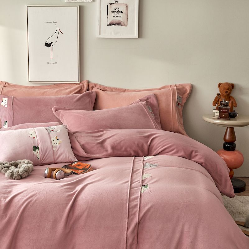 涞澳 2019新款美绒系列四件套 猫咪—豆沙