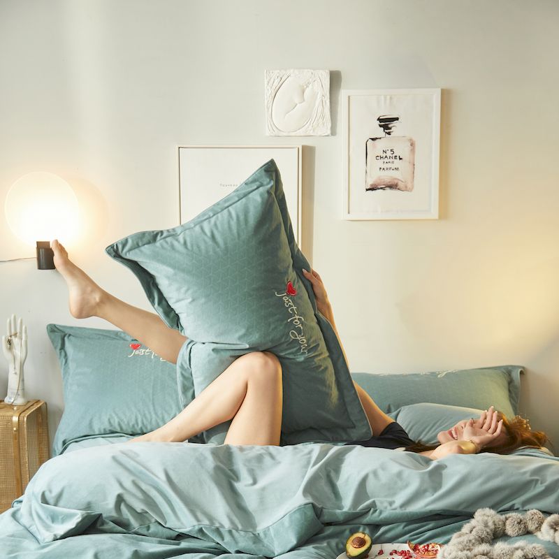 涞澳 2019新款澳绒系列四件套 爱心—浅蓝