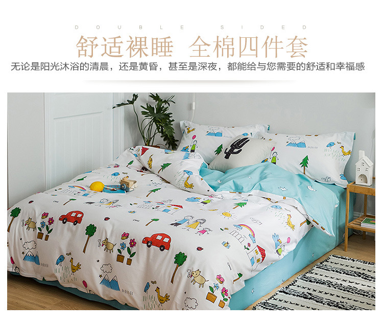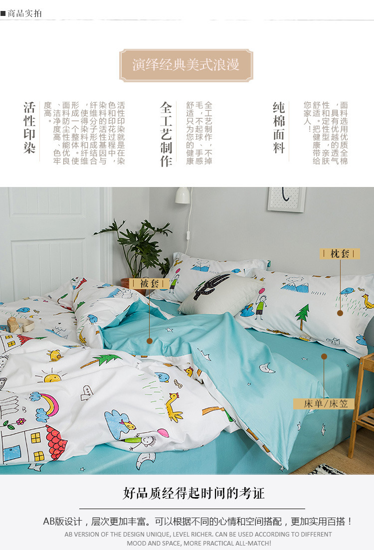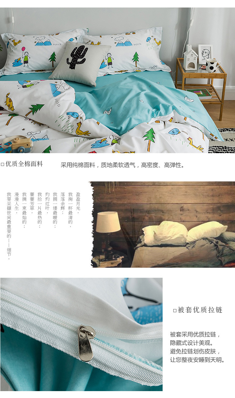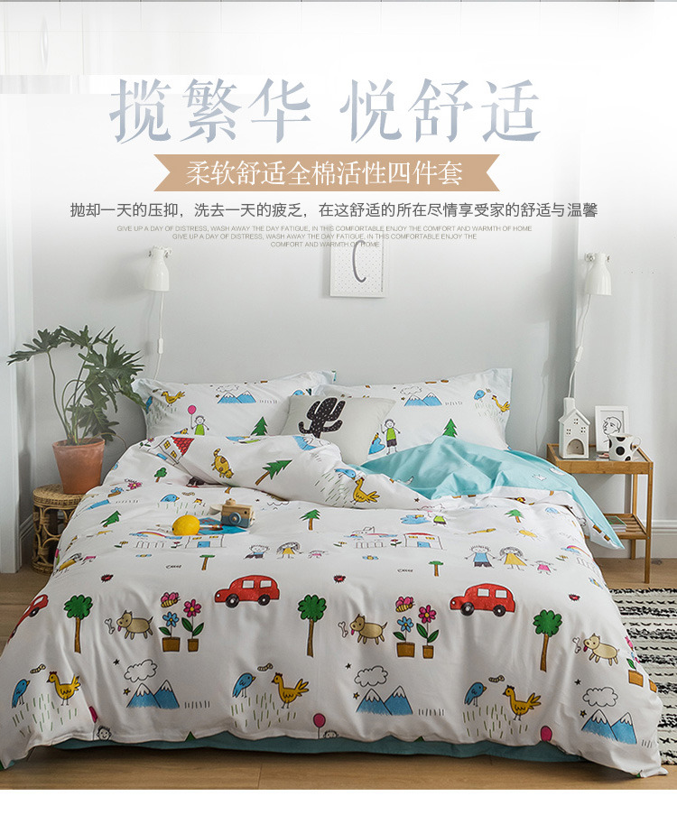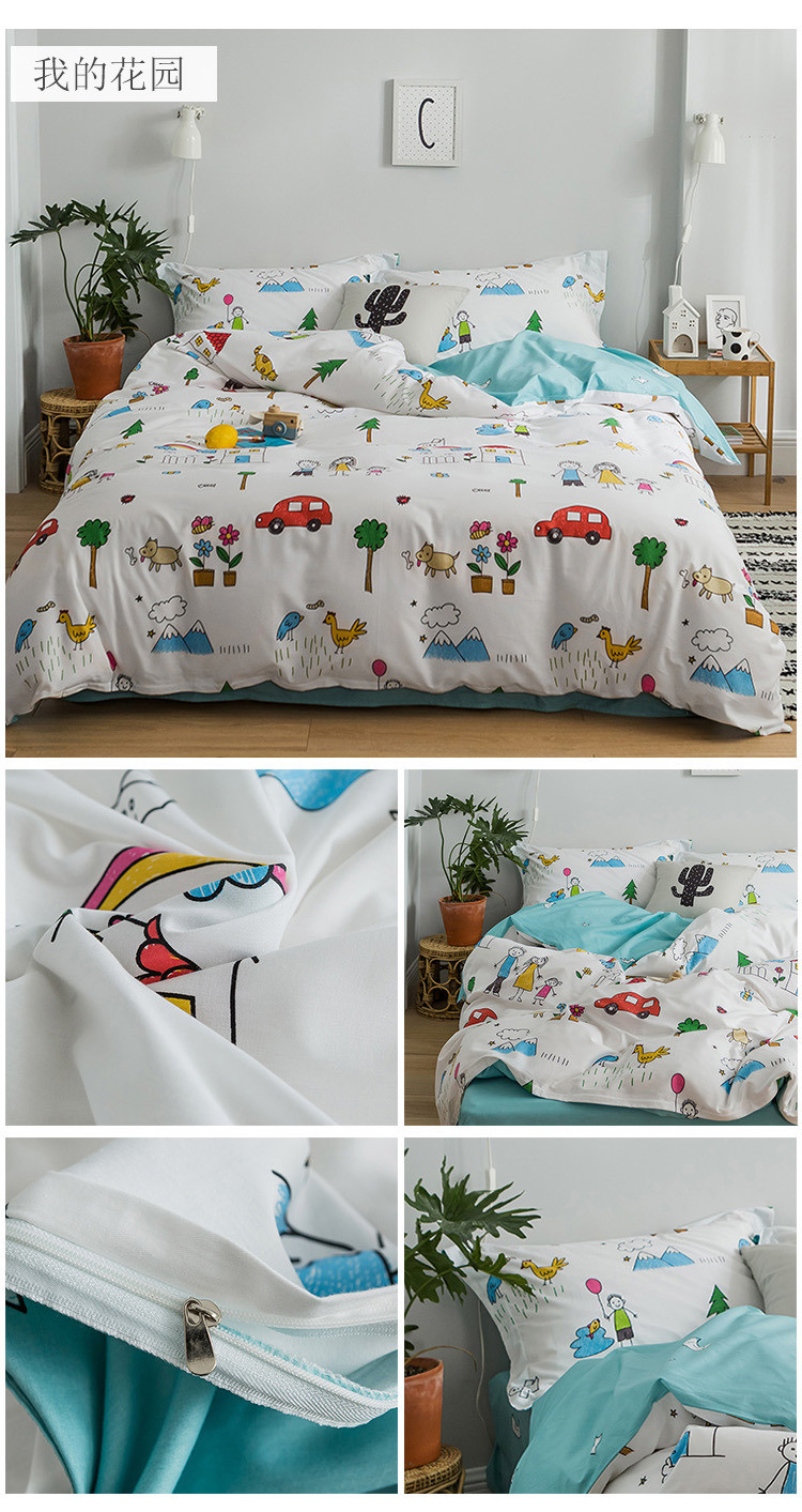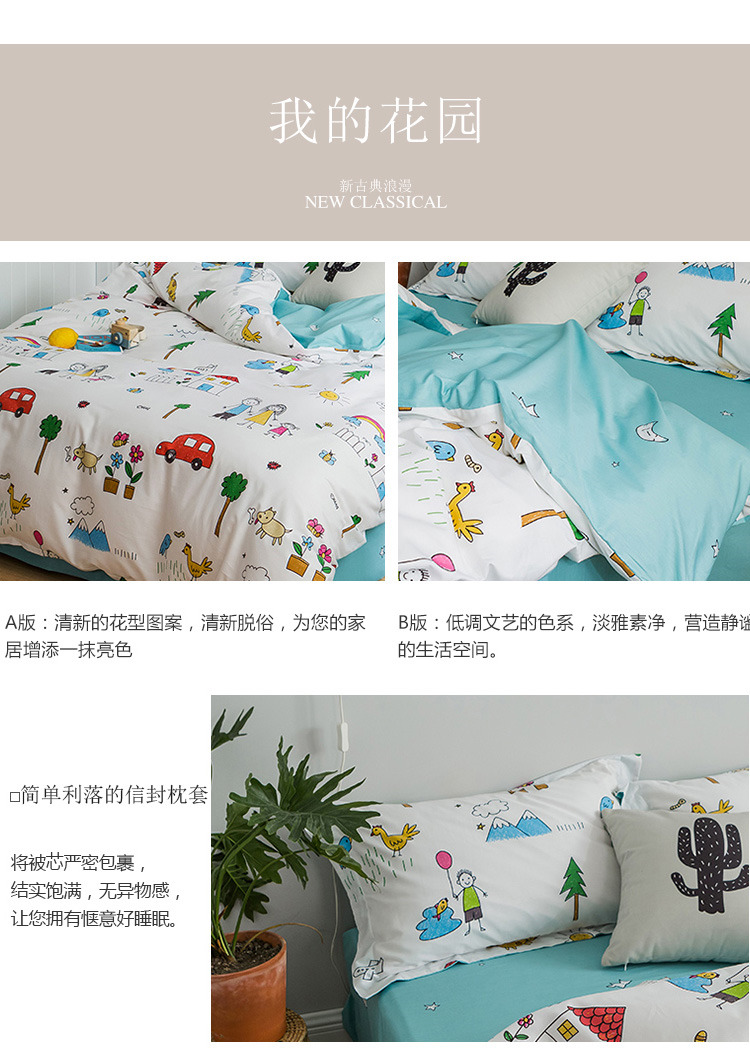 窝米 2018全棉13372减龄卡通系列四件套床单款我的花园