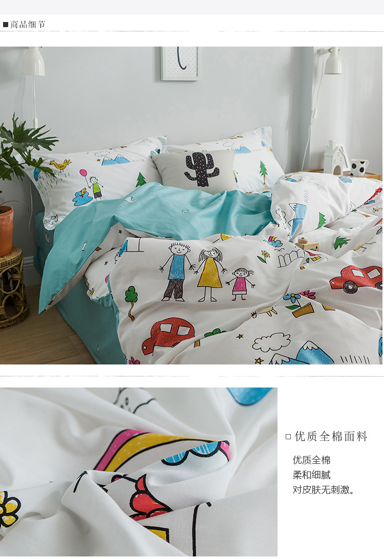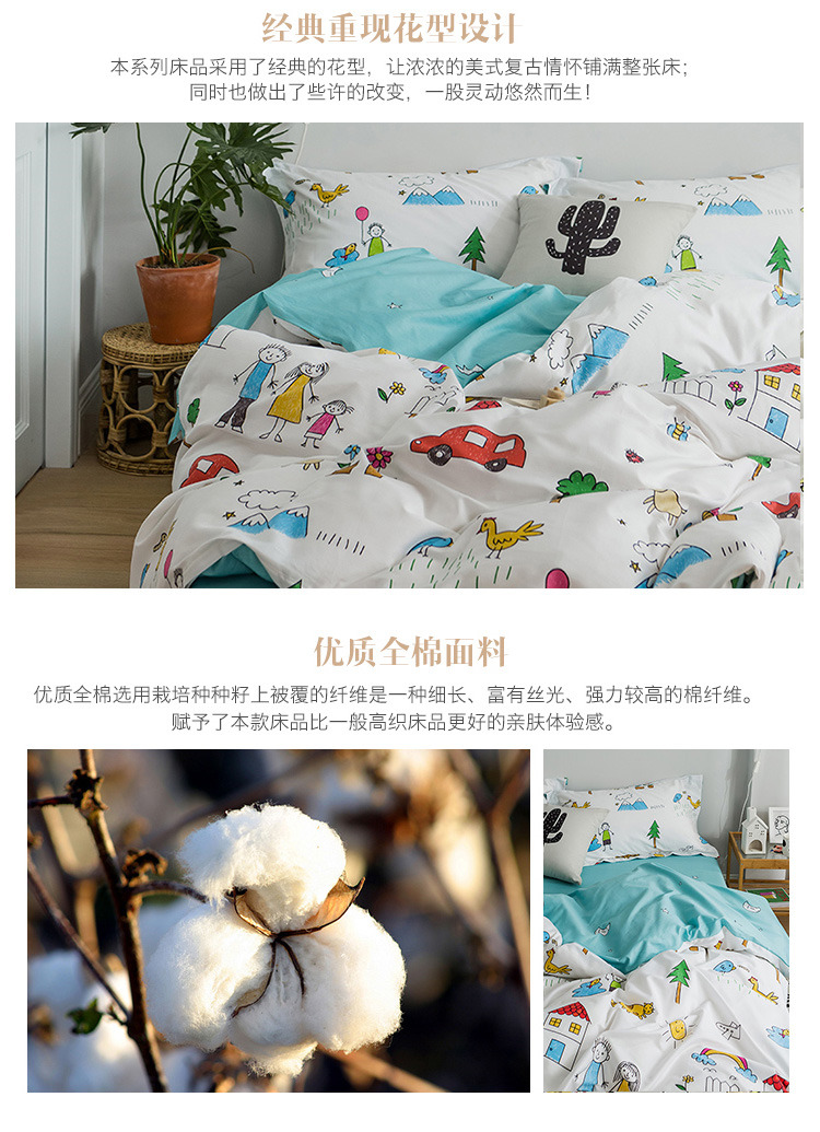 商品名称:窝米 2018全棉13372减龄卡通系列四件套床单款我的花园