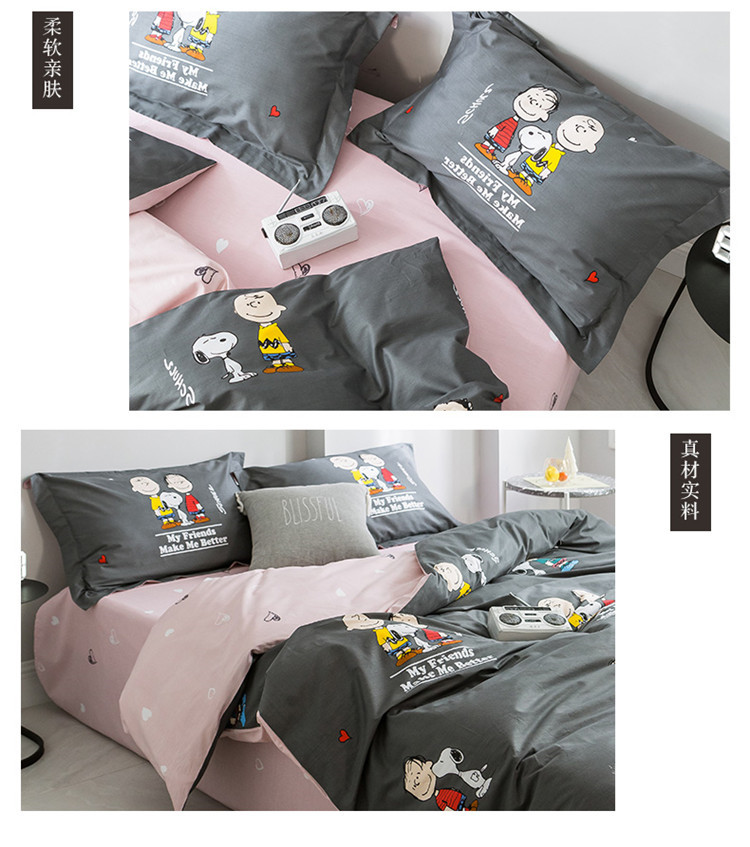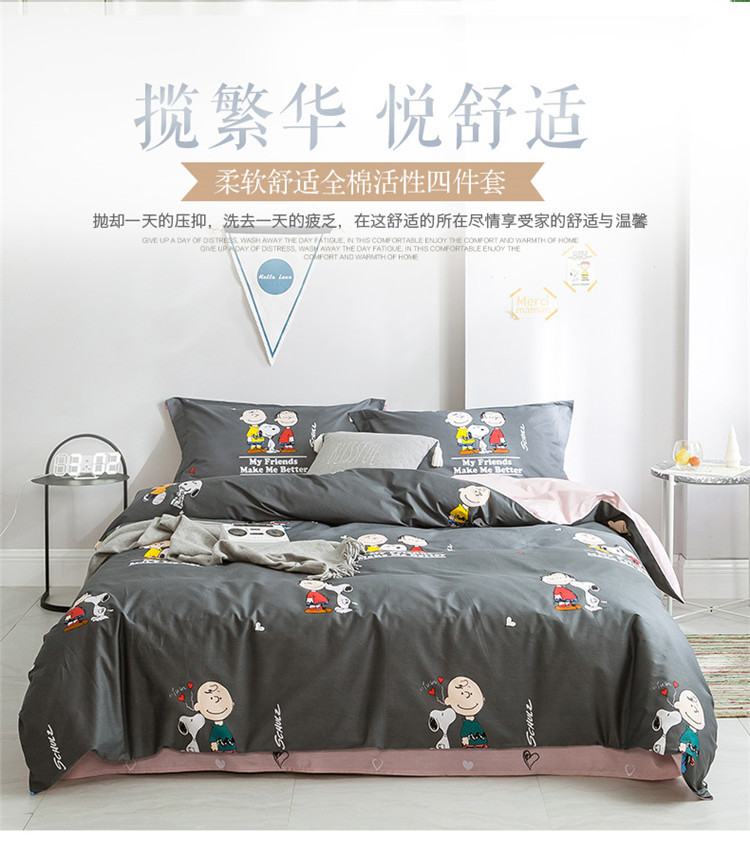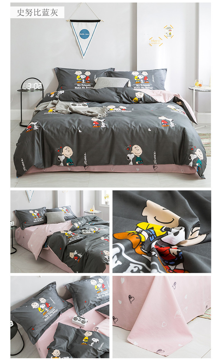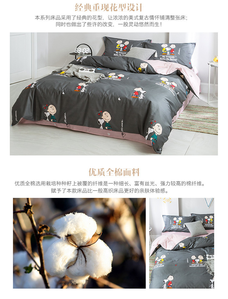 商品名称:窝米2019全棉13372减龄卡通系列四件套床单款史努比蓝灰